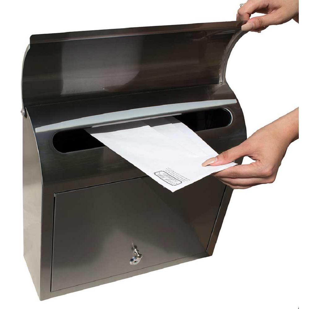 Winfield Compton is a simple decorative wall mount locking mailbox which features a curved top. Mailbox is made of stainless steel and comes with a lock and set of keys. Front locking door opens for easy mail retrieval. Incoming Mail slot opening: 13 in. x 1-3/8 in.