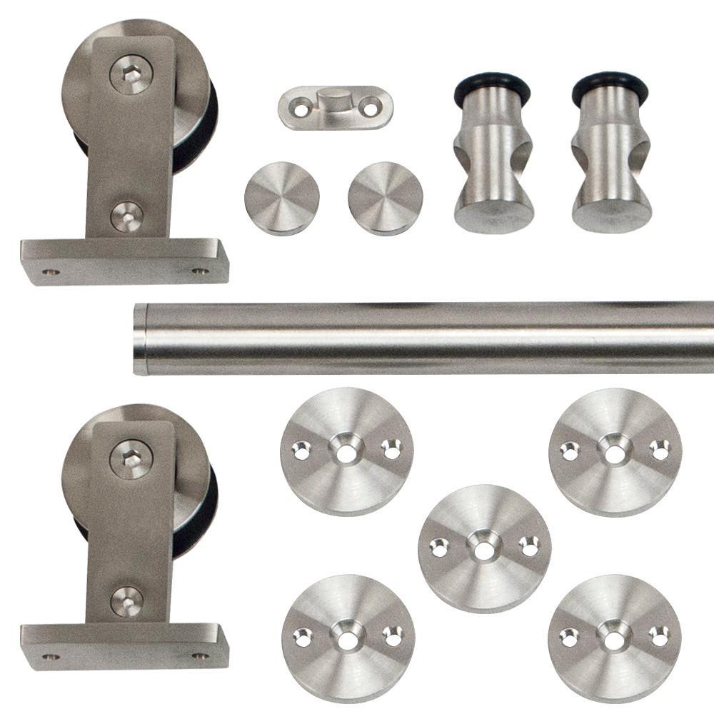 96 in. Stainless Steel Top Mount Rolling Door Hardware Kit for Wood Doors