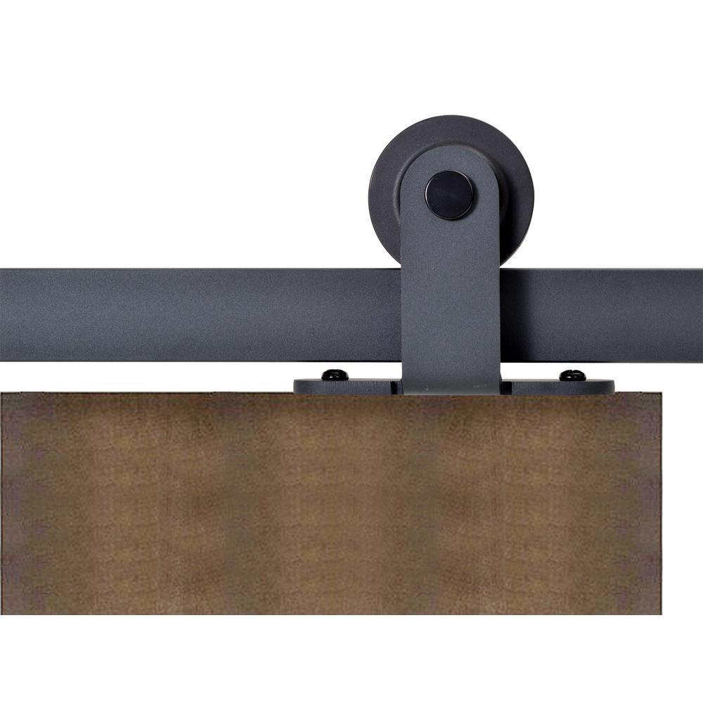 Top Mount 72 in. Matte Black Barn Style Sliding Door Track and Hardware Set