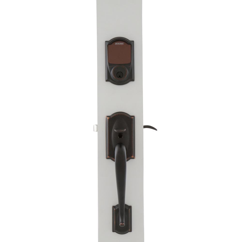 Camelot Aged Bronze Sense Smart Door Lock with Left Handed Accent Lever Door Handleset