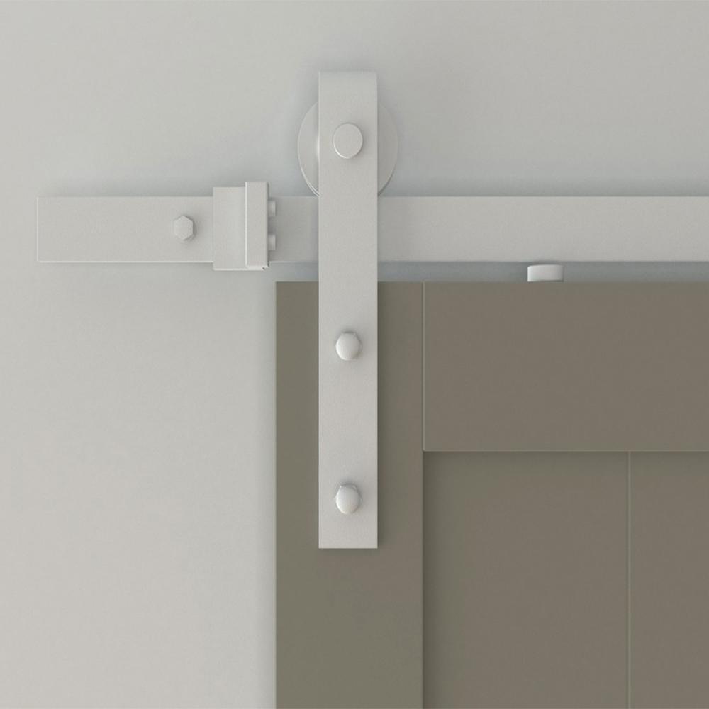 Soft Closed Hook Strap White Rolling Barn Door Hardware Kit with 2-3/4 in. Wheel