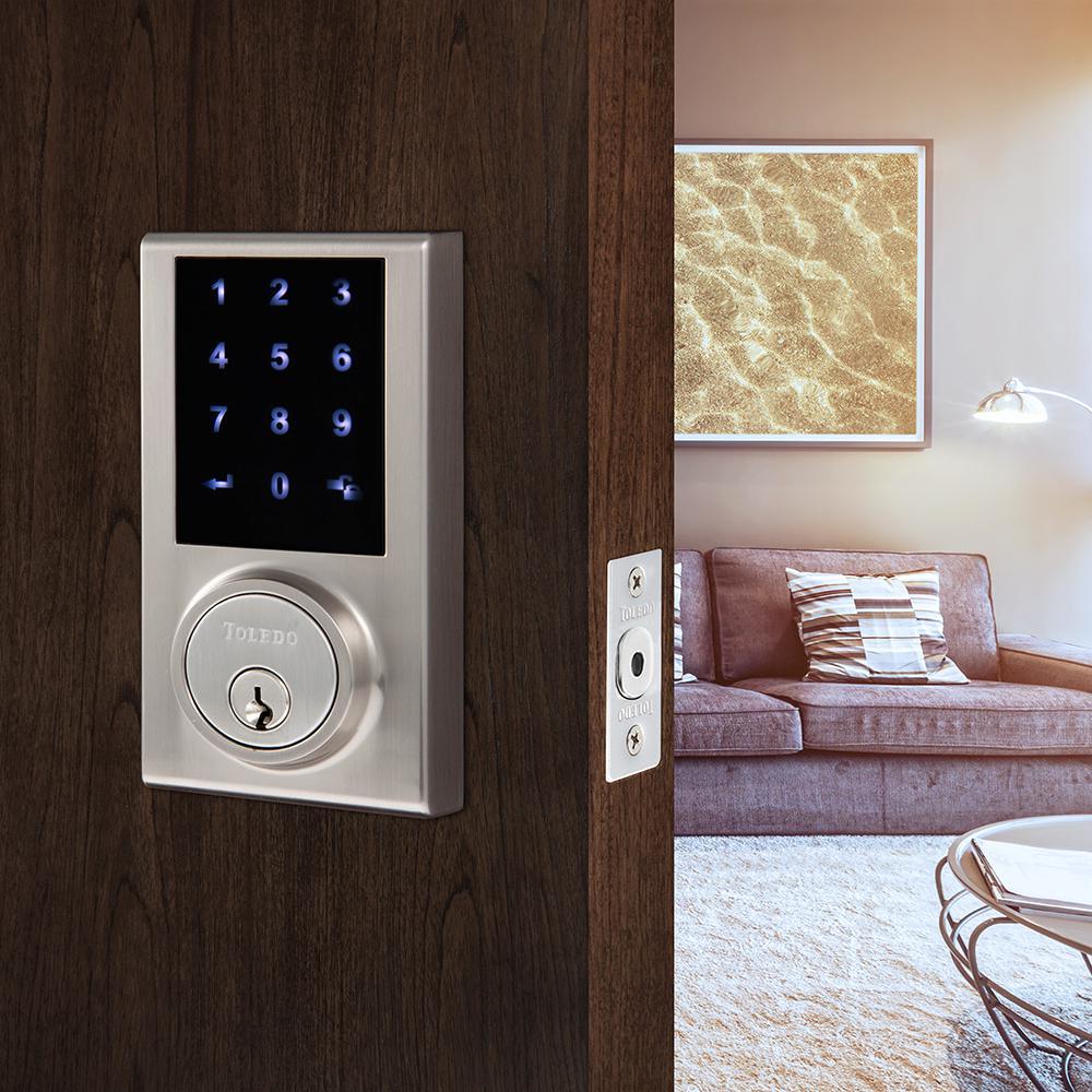 The Toledo Electronic Z-Wave deadbolt feature and extra layer of personal access and security control. It enables the technology for the age of anywhere & everywhere with wireless control and monitoring. The Z-Wave deadbolt also uses a standard regular keyed entrance and user keypad access. It's stainless steel body with an anti-bump system delivers an increased comfort, convenience, safety and security. This deadbolt makes wireless device and system control practical and affordable. Requires 4 AA batteries and fits standard backset from 2-3/8 in. to 2-3/4 in. metal or wood door with a thickness of 1-3/8 in. to 2 in. Take control of the entrance to your house conveniently on your cell phone.