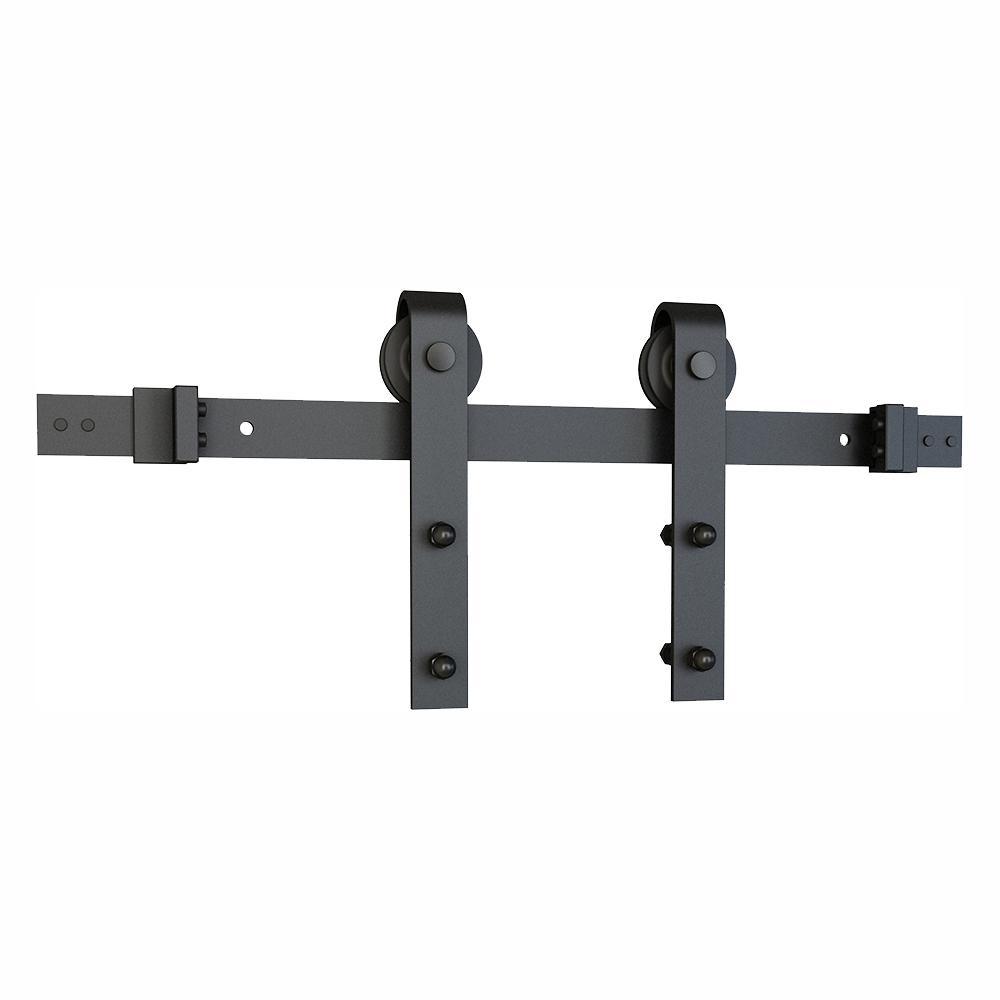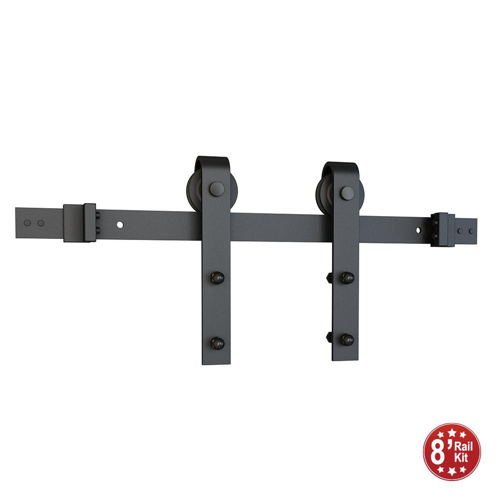 Black Solid Steel Sliding Rolling Barn Door Hardware 8 ft. Kit for Single Wood Doors