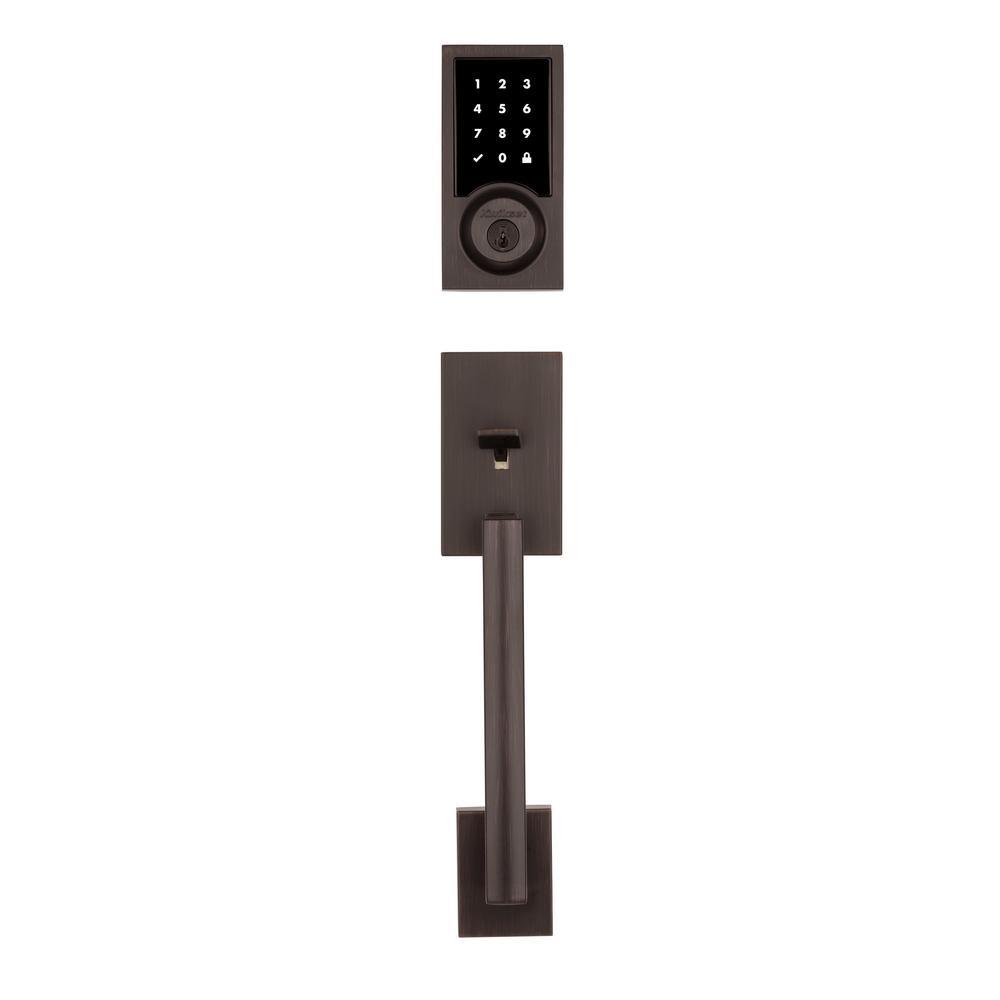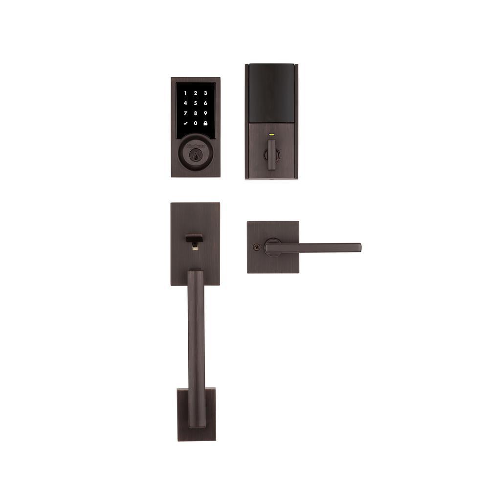 SmartCode 915 Contemporary Venetian Bronze Electronic Deadbolt with San Clemente Handle Set and Halifax Interior Lever