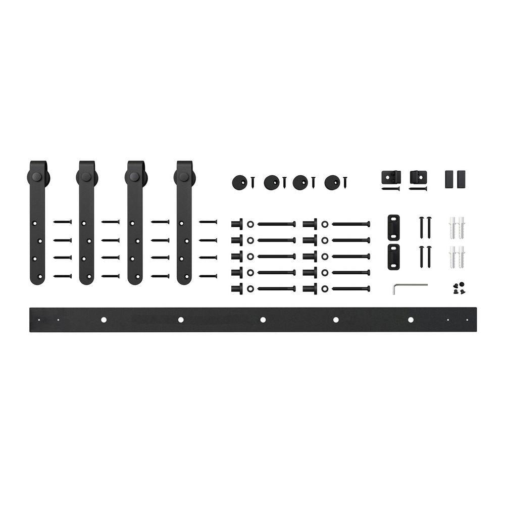 6 ft. Black Solid Steel Mini Sliding Rolling Barn Door Hardware Kit for Double Furniture Wood Doors
