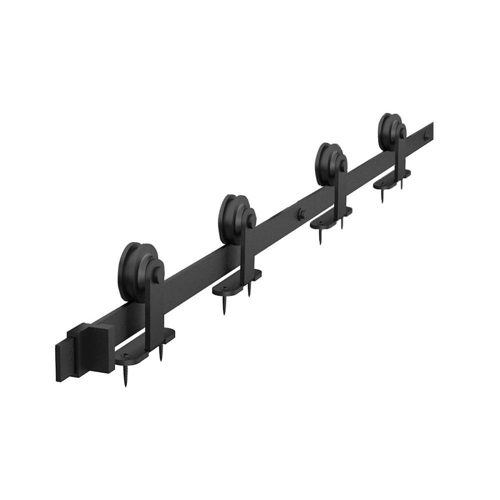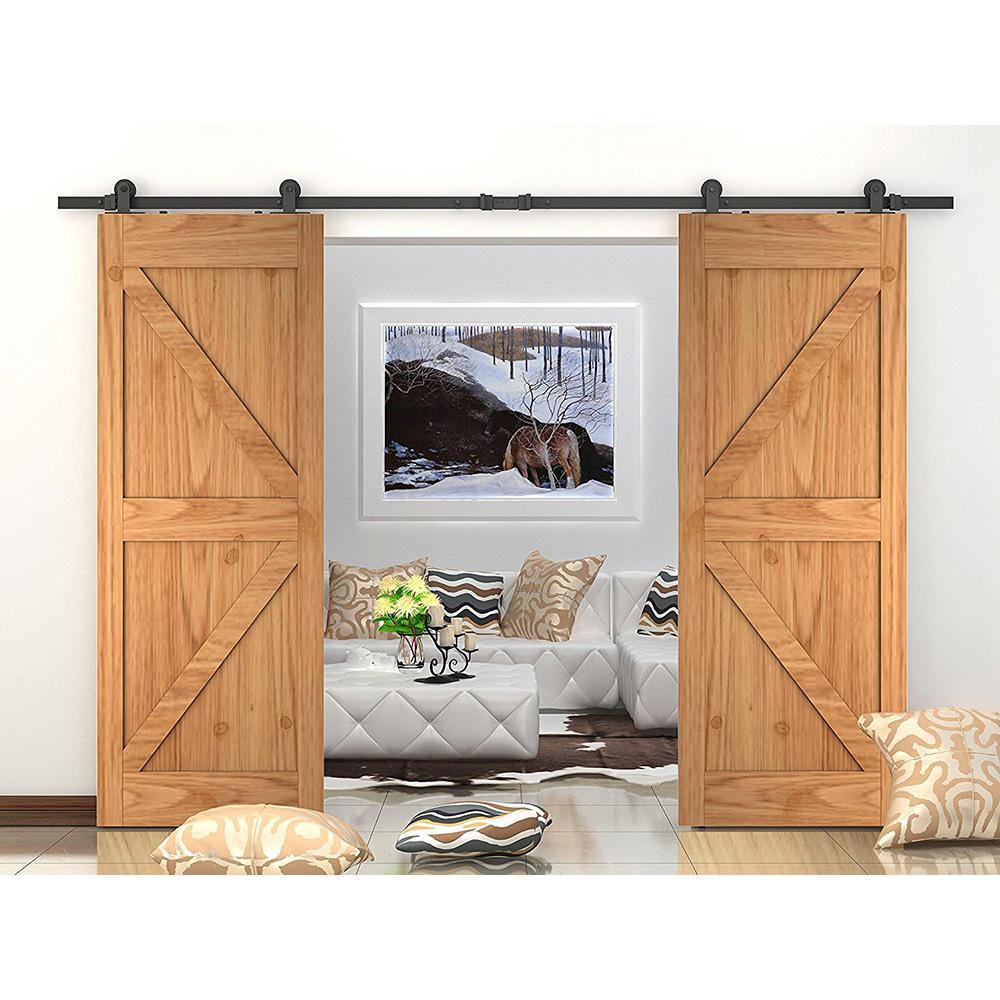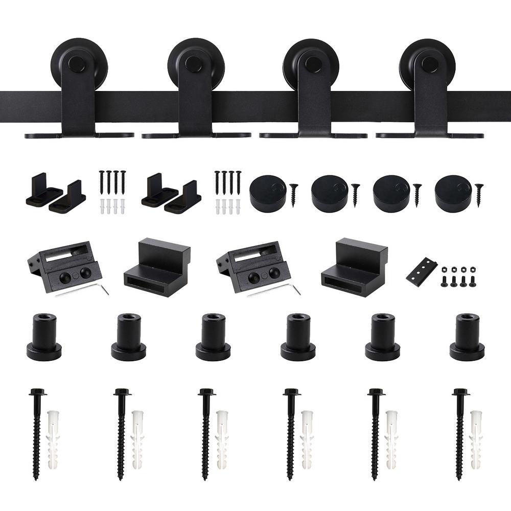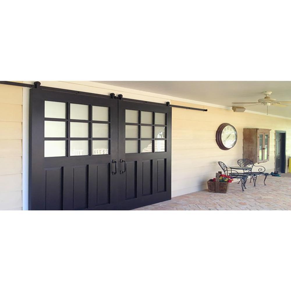 8 ft./96 in. Frosted Black Top Mount Sliding Barn Door Hardware Track Kit for Double Doors with Non-Routed Floor Guide