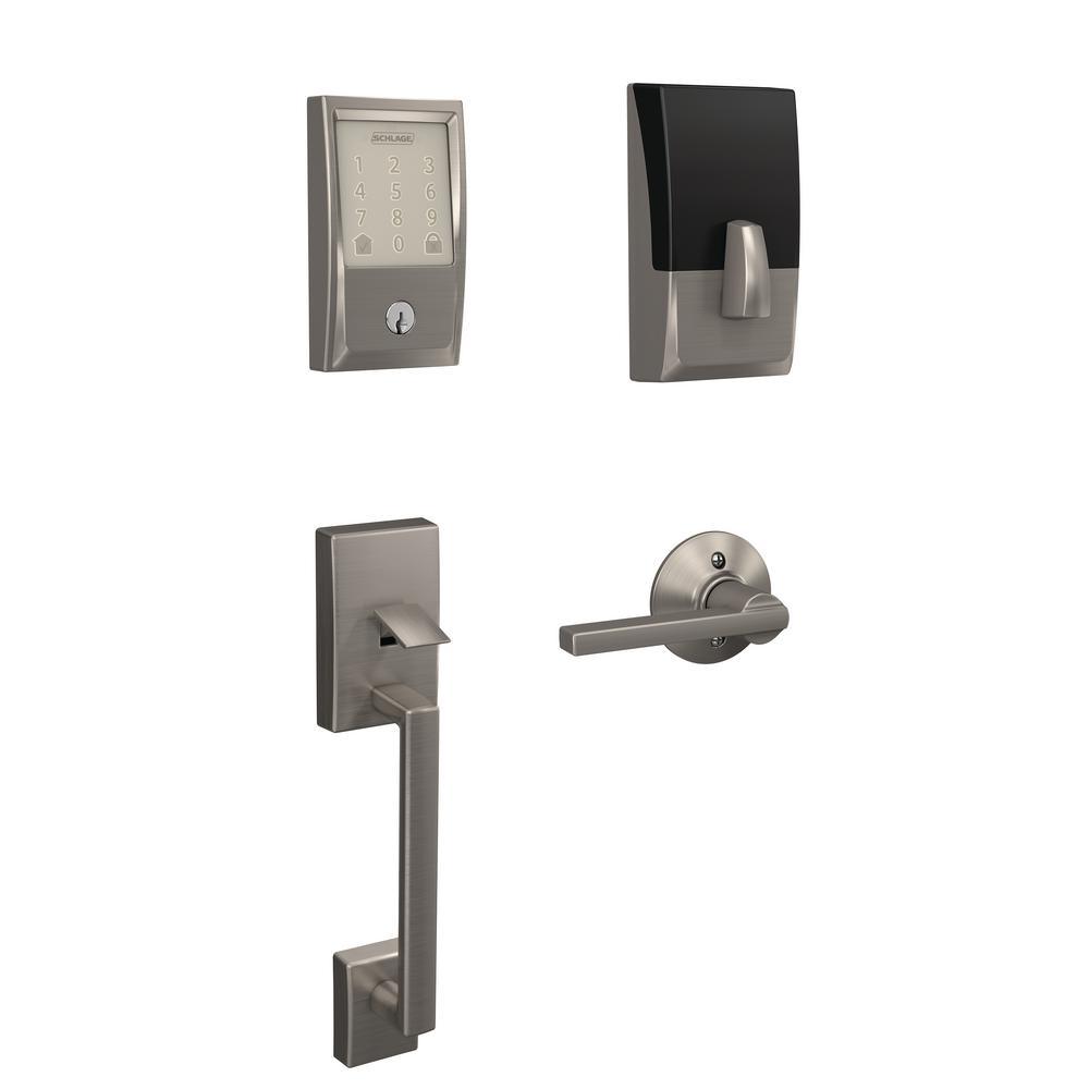 Century Encode Smart Wifi Door Lock with Alarm and Latitude Lever Handleset in Satin Nickel