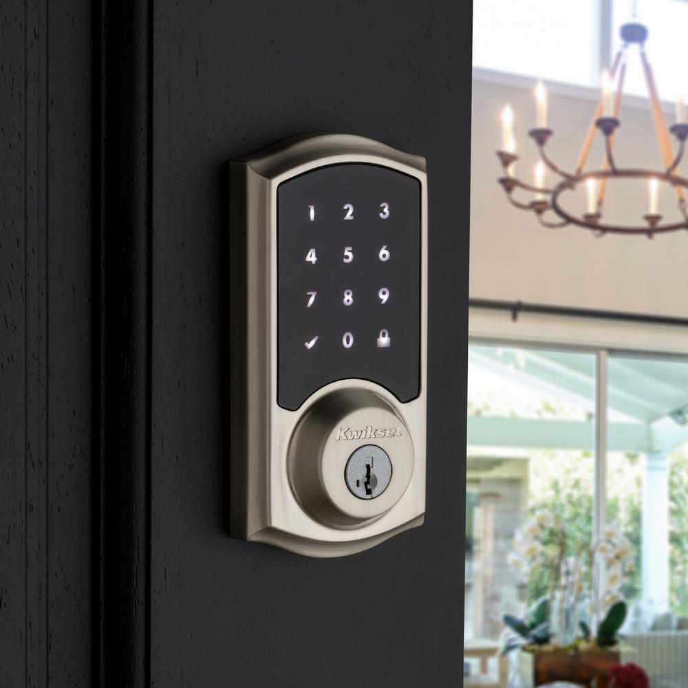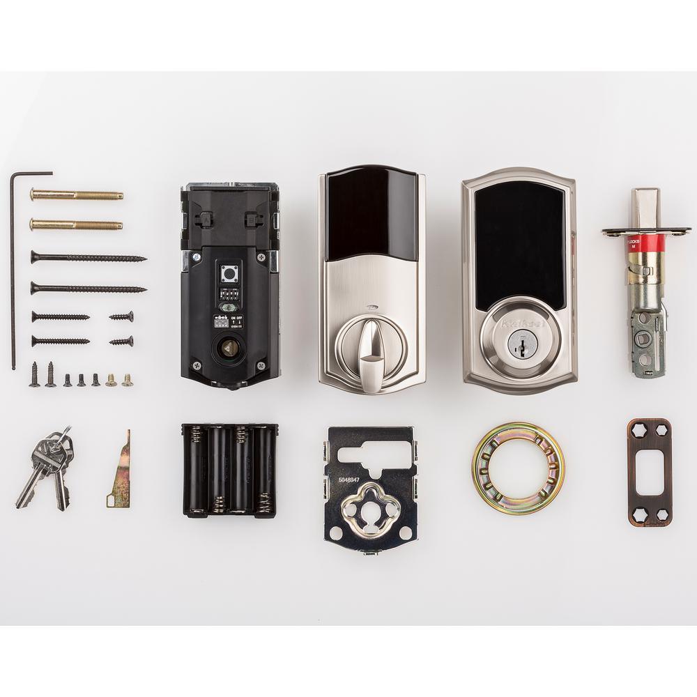 The SmartCode touchscreen smart lock with Home Connect technology enables the lock to wirelessly communicate with other devices in home. The lock allows the user (through a web enabled device) to remotely check the door lock status, lock or unlock the door and receive notifications. SmartCode is a 1-touch locking motorized deadbolt. With your personalized code, you can enter your home with the convenience of keyless entry and the back-lit keypad provides increased visibility. It features patented SecureScreen technology to prevent code detection from fingerprints on the touchscreen. SmartCode is easy to install, program and use and operates on 4 AA batteries. It also features SmartKey Security as the back-up keyway. This single cylinder deadbolt can be locked or unlocked by using the keypad or key from the outside as well as the turn button from the inside. The crisp, clean appearance of the Satin Nickel finish adds to the overall look of the product and brings a modern feel.