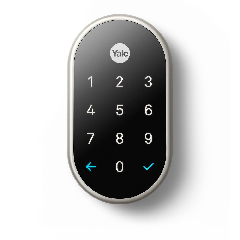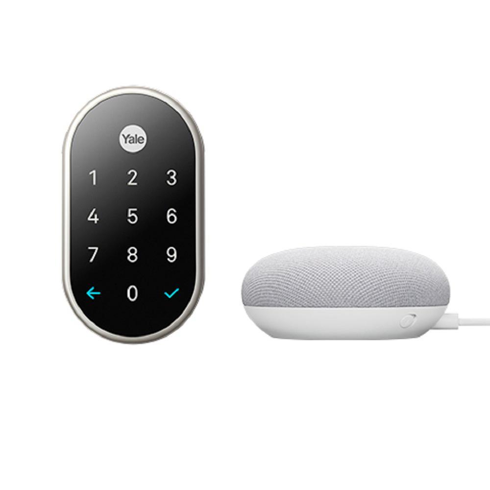 Nest x Yale Smart Lock Satin Nickel + Nest Mini (2nd Gen) Smart Speaker Chalk