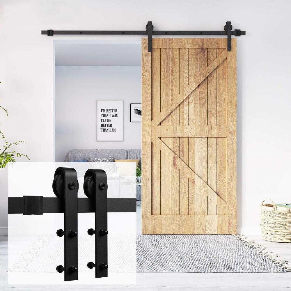 6 ft./72 in. Black Steel Bent Strap Sliding Barn Door Track and Hardware Kit for Single Door with Floor Guide
