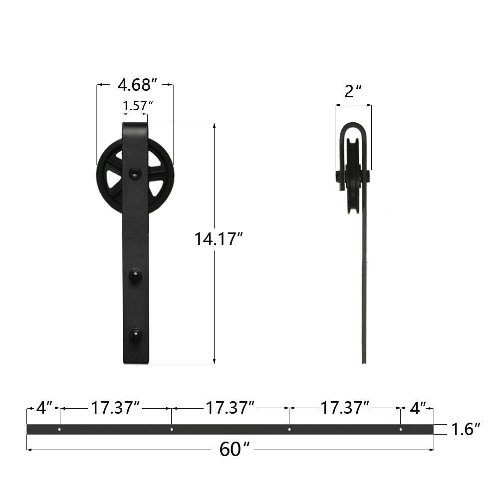 5 ft./60 in. Black Sliding Barn Door Track and Hardware Kit with Bigwheel J-Shape Hanger For Single Door