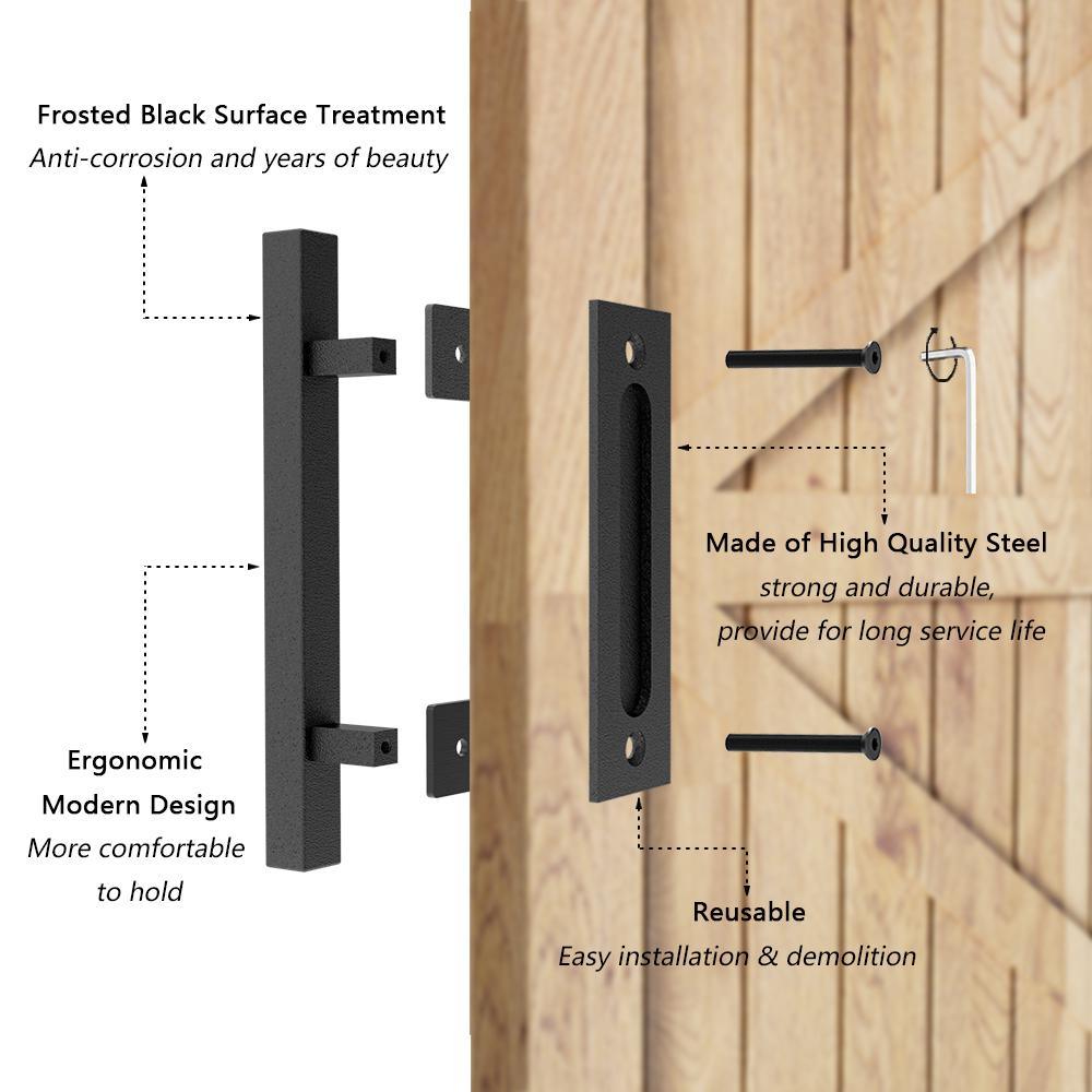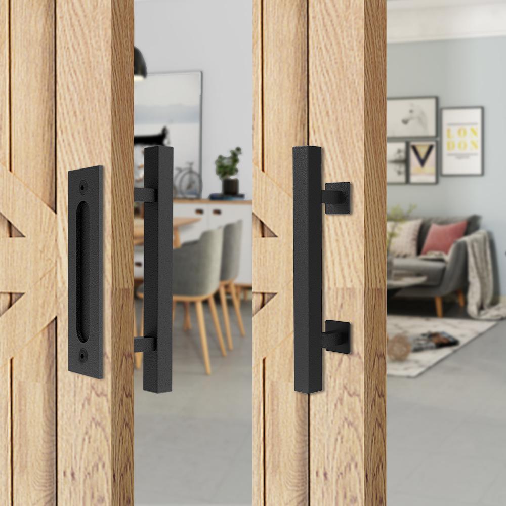 • Set handle on 2-sides of the door, inside flush pull and outside pulls handle, a perfect application for the sliding barn door