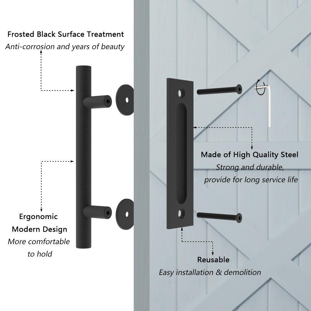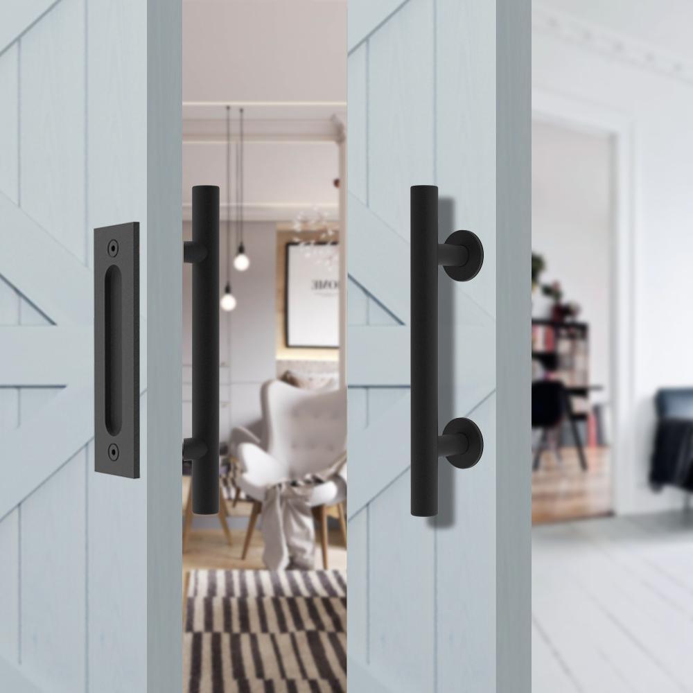 • Set handle on 2-sides of the door, inside flush pull and outside pulls handle, a perfect application for the sliding barn door