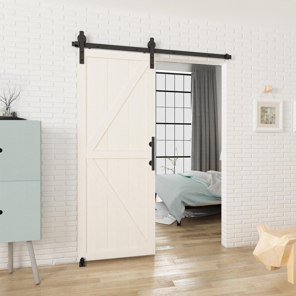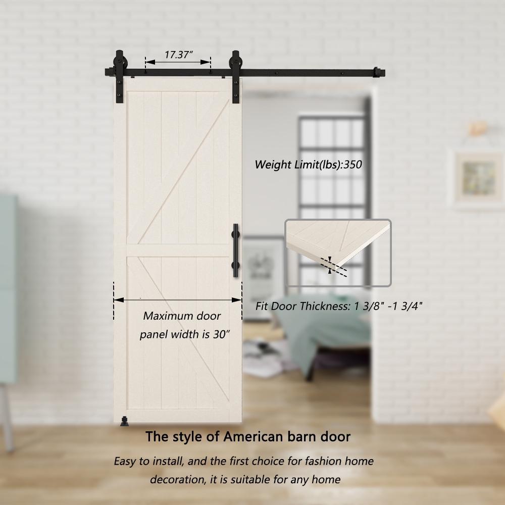 • Pre-install notice: only the hardware is for sale, doors are not included, the hardware package has lag bolts for wooden wall/drywall/concrete wall, our sliding barn door hardware kit is compatible with door thickness from 1-3/8 in. to 1-3/4 in., if you have a door trim, you would better put a header board that is as thick as the trim and then attach the rail to the header board, you need to have at least 5 in. of space between the top of the door to the ceiling to accommodate the hardware, we use 2 hangers to hold 1 door, for a single door kit, there will be 2 hangers in the package, for a double door kit, there will be 4 hangers, if you have a door that is either too wide or too heavy, then you can purchase additional hangers for that door
