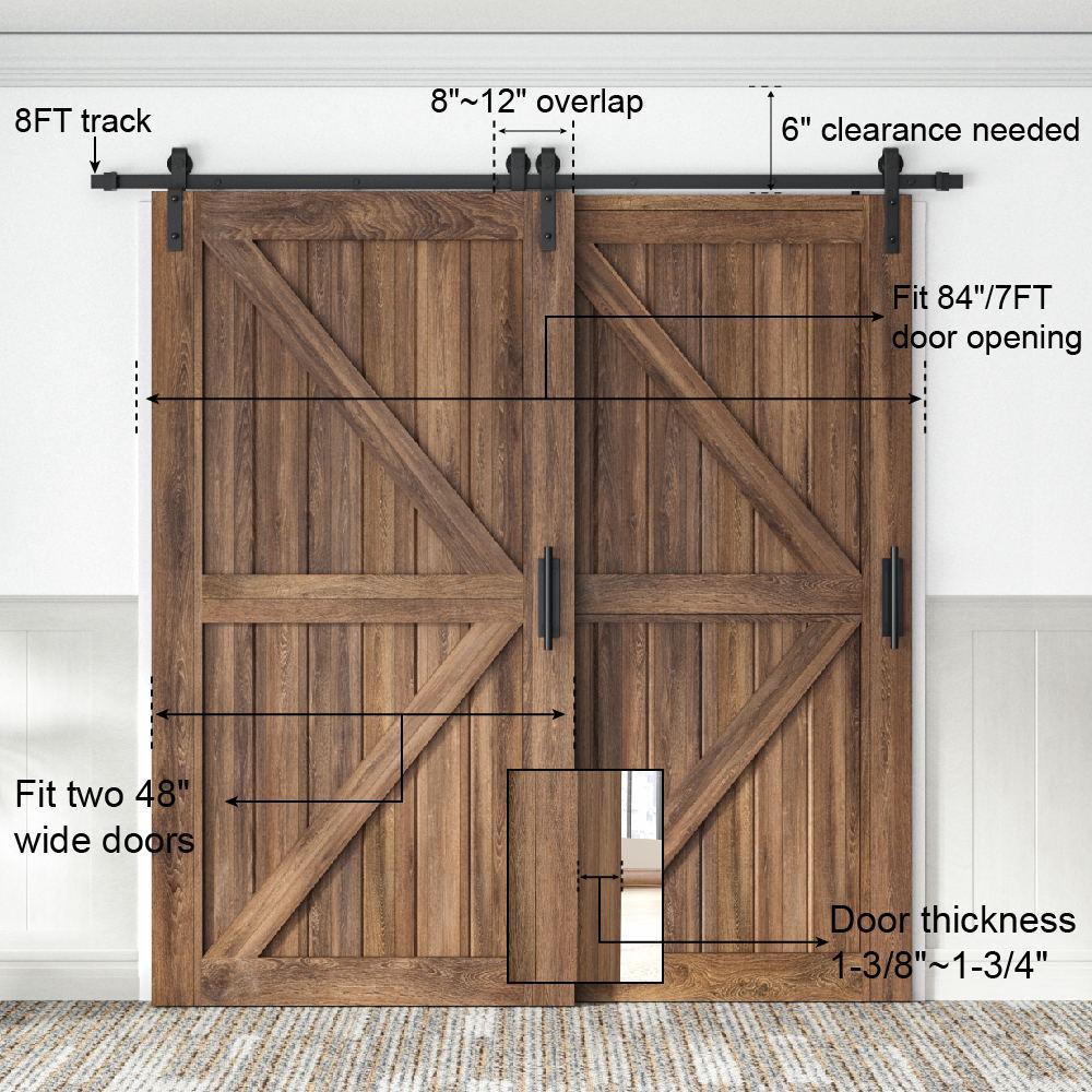 8 ft./96 in. Single Track Bypass Barn Door Hardware Double Doors Kit, Heavy-Duty Sliding 1-Track Antique Roller