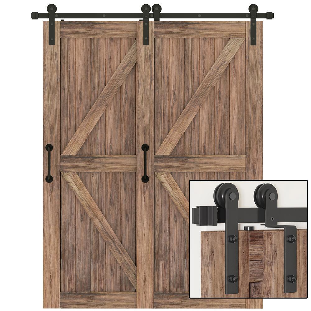 6.6 ft./79.2 in. Single Track Bypass Sliding Barn Door Hardware Kit for Double Doors Low Ceiling