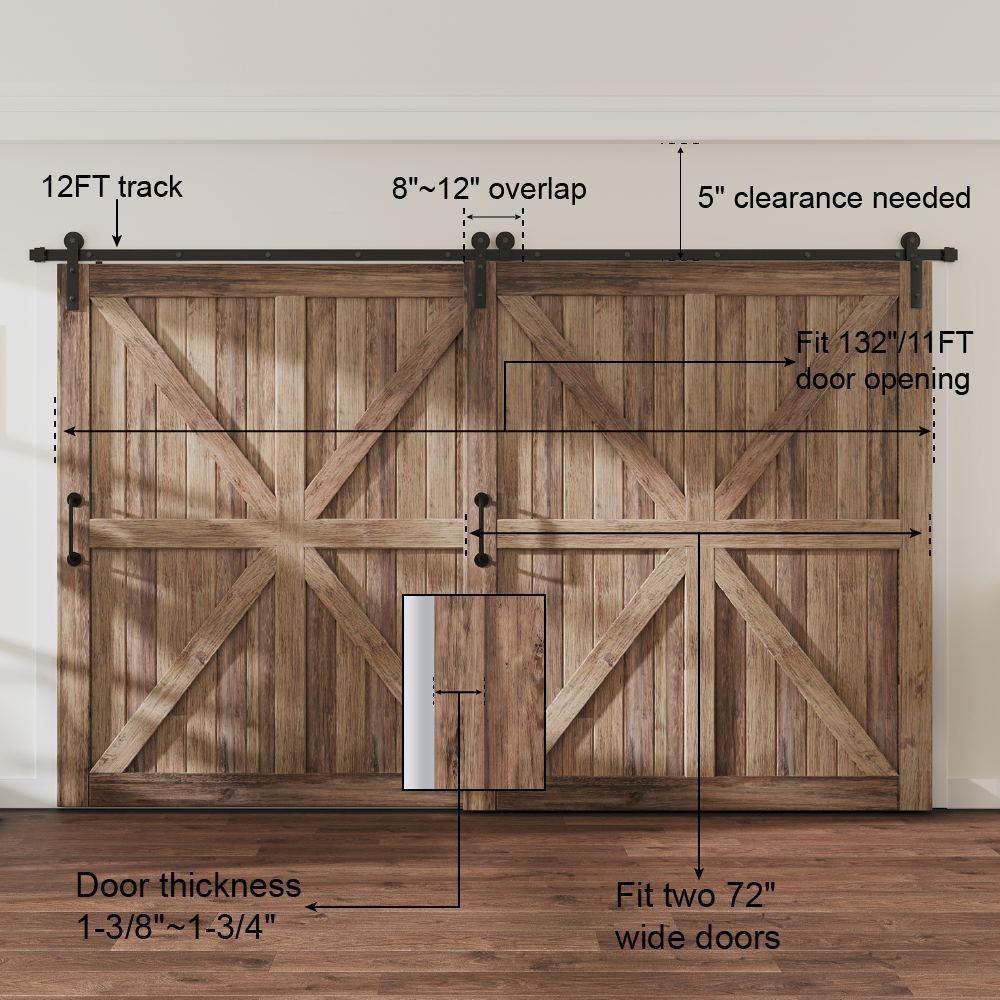 WINSOON is the leading manufacturer of sliding barn door hardware. Craftsmanship, excellence and innovation are our primary pursuits. We enjoy the working with raw materials to make them into something extraordinary. Trustful quality and workmanship is what you can expect when you choose WINSOON. We lead the way in sliding barn door hardware and we invite you to create something unique. Smooth rolling, balanced hangers ensure that all wheels carry weight evenly for the smoothest operation. This 12 ft. single track bypass compared with the previous bypass products, it saves more space and requires less distance from the top of the door to the ceiling. At least 6 in. of space can be installed in your home. Because the wheels are staggered, this will result in an overlap size of about 8 in. - 12 in. If you are installing two 72 in. doors, then your door opening length should be perfect at 132 in.