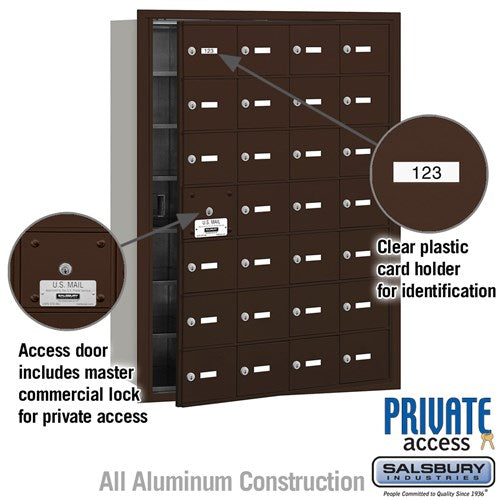 4B+ Horizontal Mailbox with 28 A Doors - Bronze - Rear Loading - Private Access