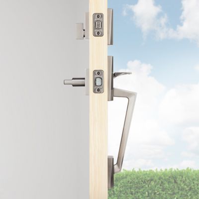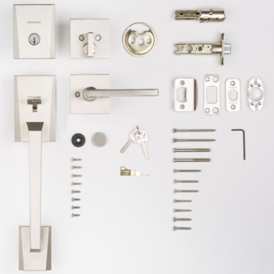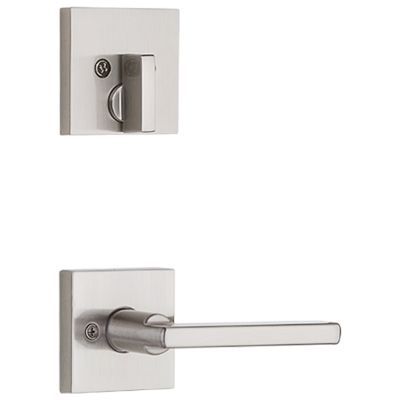 Kwikset Camino Low Profile Satin Nickel Single Cylinder Entry Door Handleset with Halifax Door Lever Featuring SmartKey Security