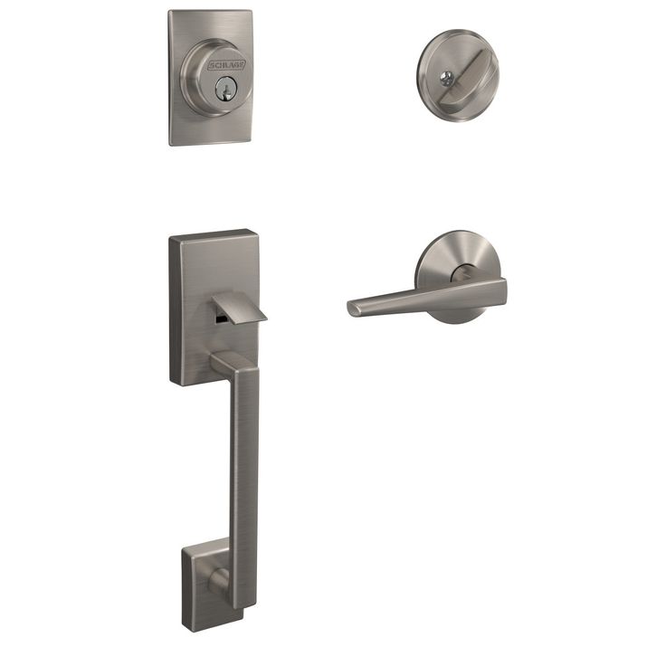 Schlage Custom Century Matte Black Single Cylinder Handleset with Eller Door Lever and Kinsley Trim