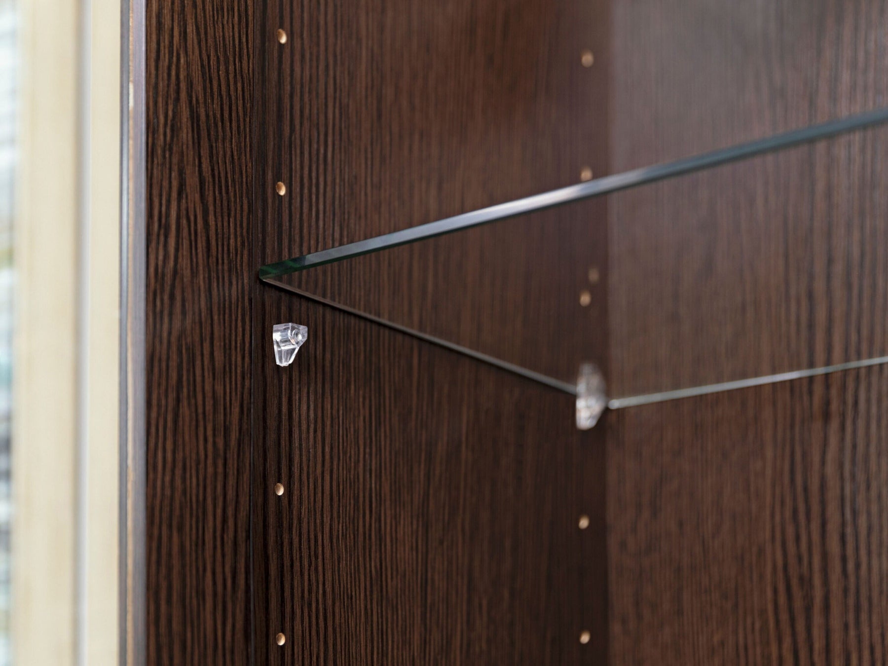• Adjustable Storage: Features height-adjustable shelves and a display cabinet with tempered glass shelves.