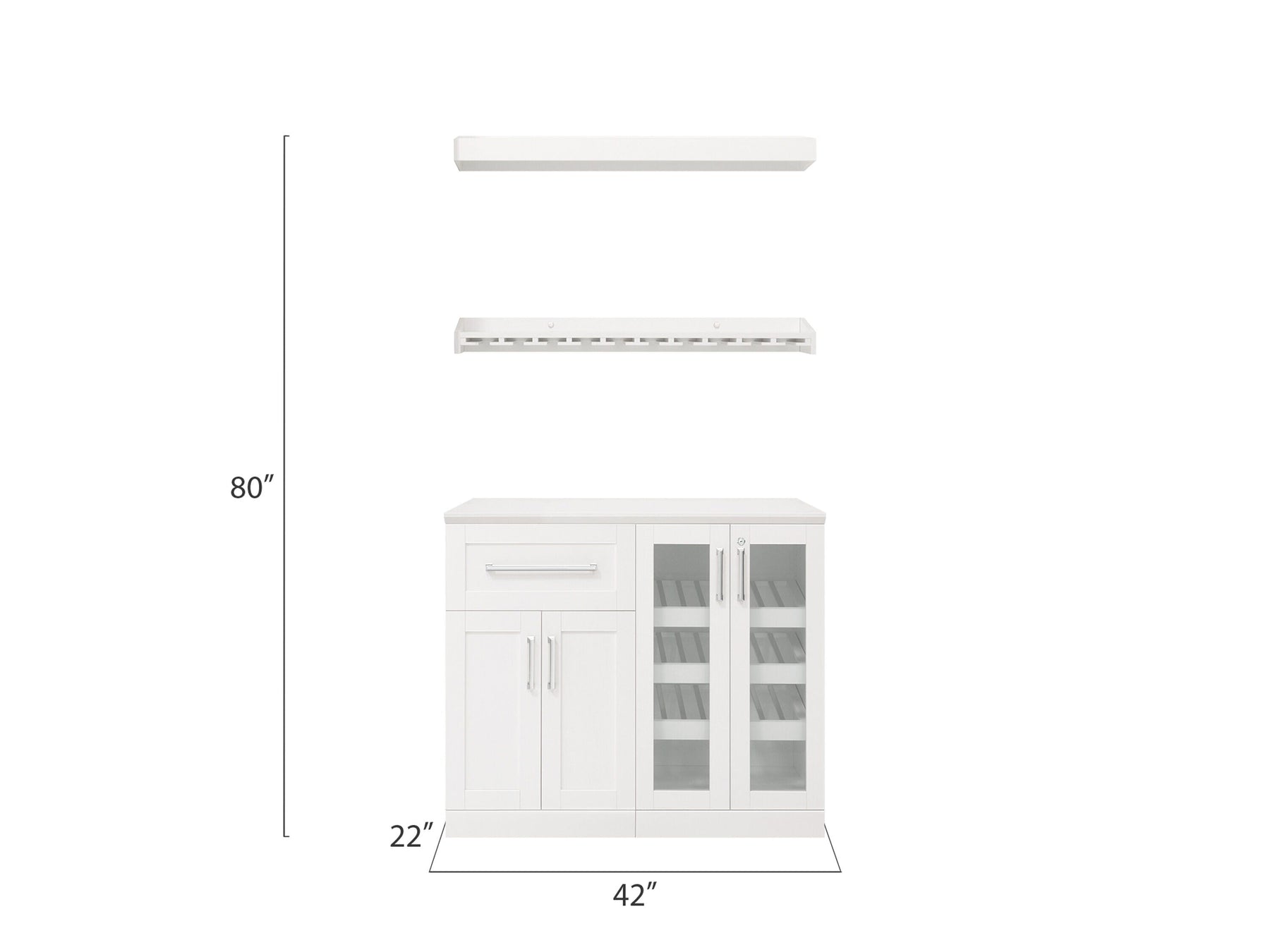 NewAge Home Bar Cabinet - White, 7-Piece Set