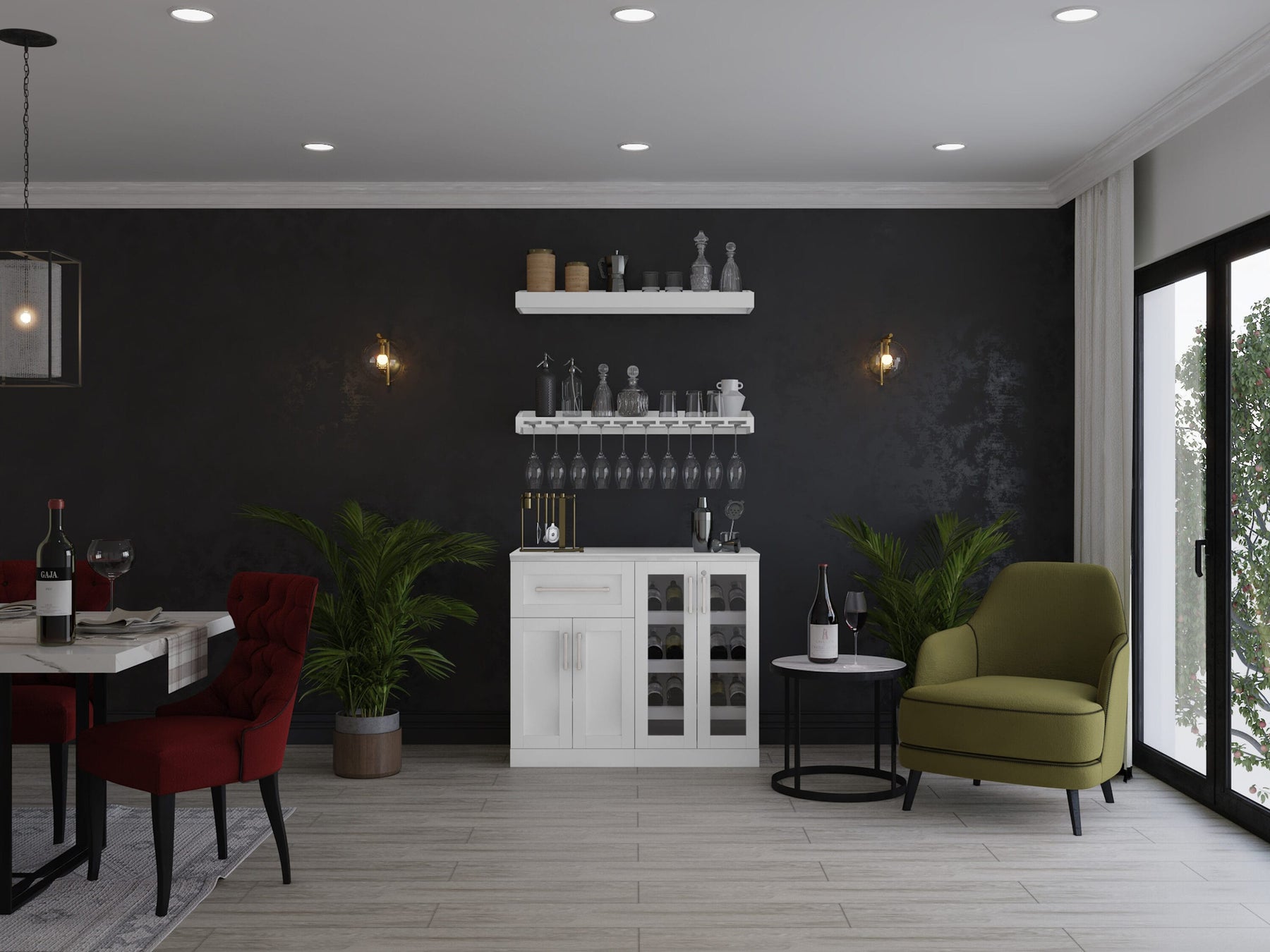 Transform your living space into a sanctuary of sophistication with the NewAge Home Bar Cabinet. This piece offers a blend of classic shaker style and modern functionality, boasting a pristine white finish that complements any décor. Display your finest collection of stemware and spirits with flair using adjustable shelves and tempered glass display. Whether you’re hosting guests or enjoying a quiet evening, this cabinet stands as an essential element of luxurious living, inviting you to indulge in the art of tasteful entertaining.