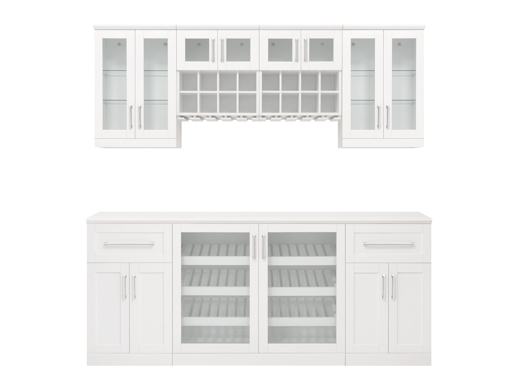 • Set Includes: 1x 42in Double Wide Display Cabinet, 2x 21in Wall Wine Rack Cabinet, and more for versatile storage options
