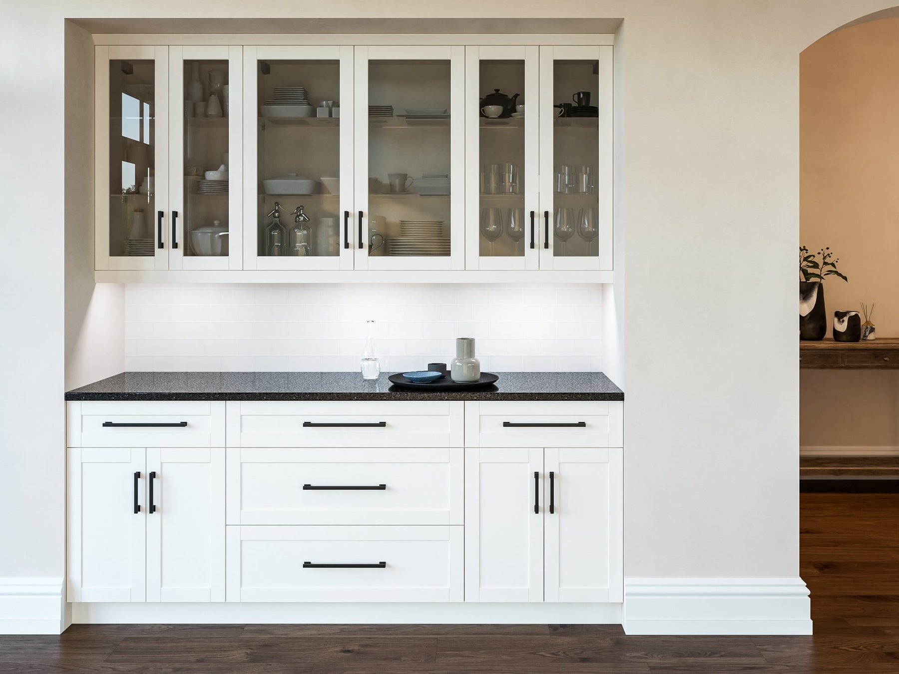 • Soft-close Hardware: Ensures quiet and seamless closing of doors and drawers, protecting your glassware