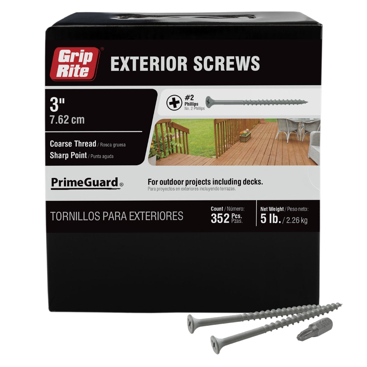 Grip-Rite PrimeGuard Ten #10 x 3-in Polymer Deck Screws, Gray, 5-lb Box (Approx. 352 pcs)