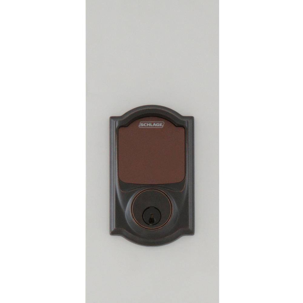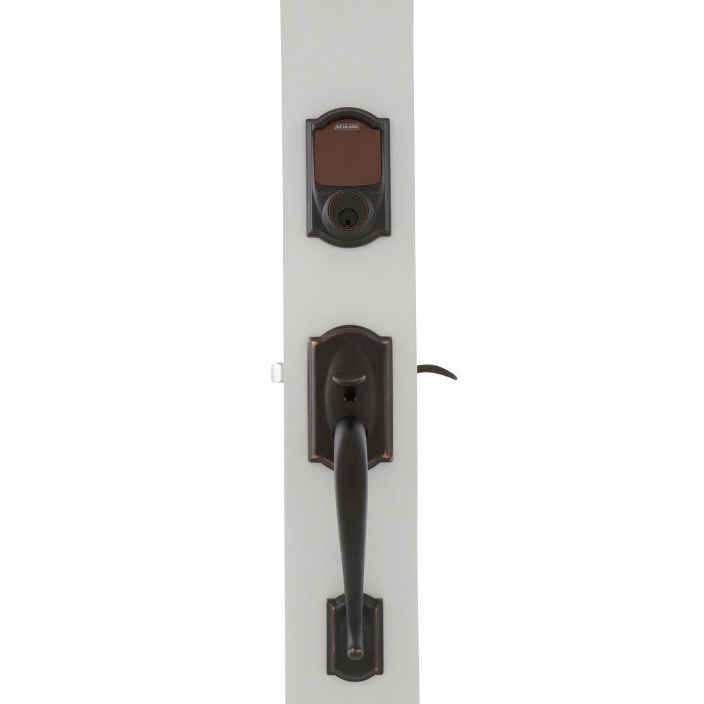 Schlage Camelot Aged Bronze Sense Smart Deadbolt & Camelot Handleset with Accent Lever (Camelot Trim)