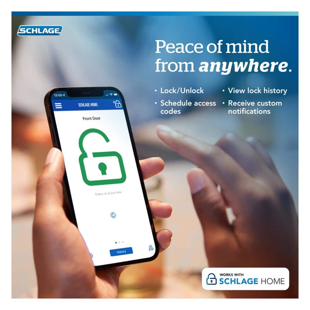 - Built‑In Wi‑Fi: Control, monitor, and manage up to 100 codes remotely via the Schlage Home app—no hub required.