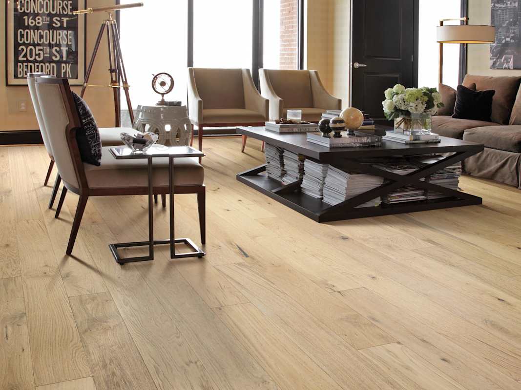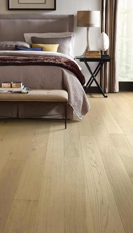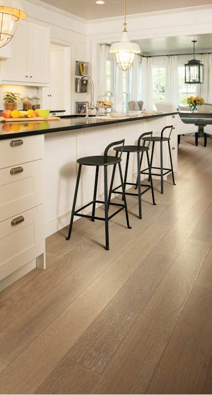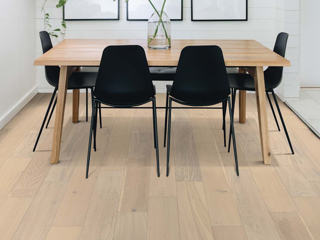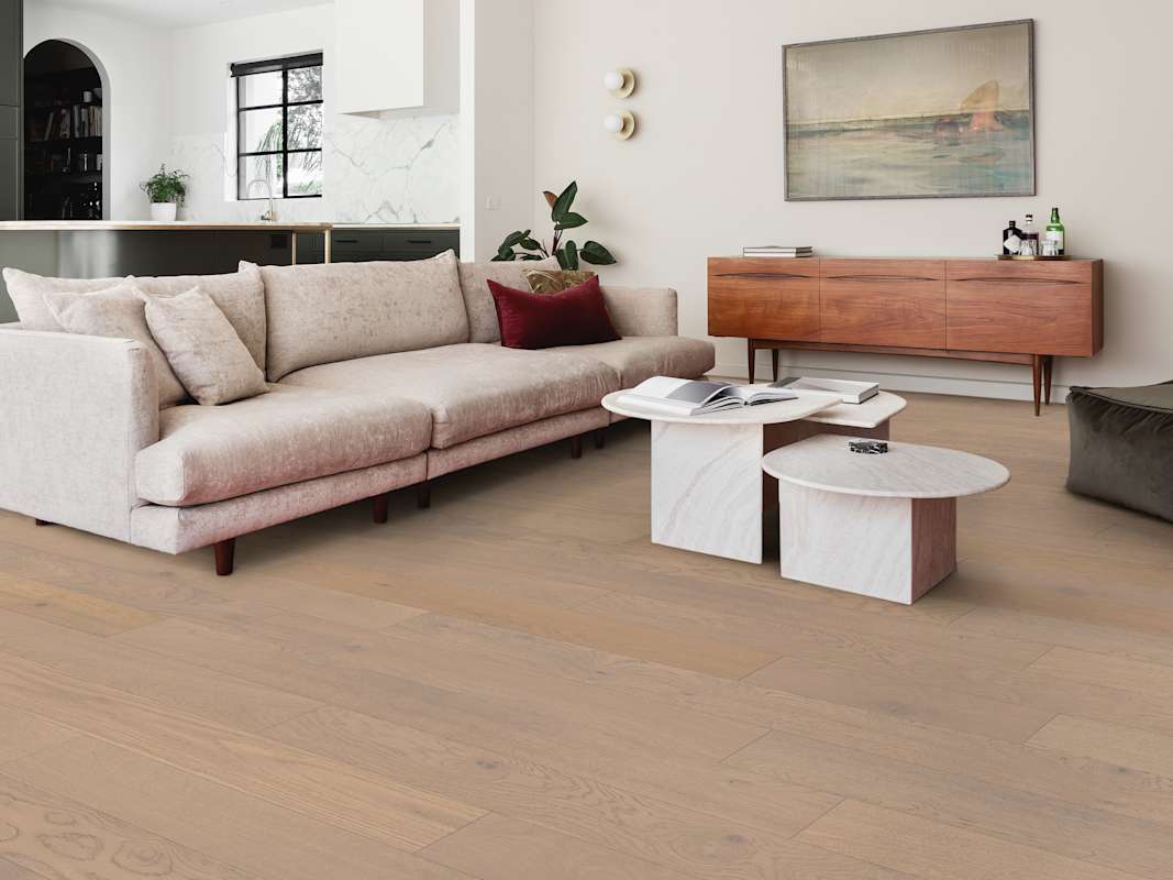 Noble Hall’s wide white oak planks bring a tailored calm to any room, the wire‑brushed grain reading like soft linen underfoot. The micro‑bevel detailing gives each board a couture finish, elevating everyday spaces with subtle texture. Pair it with sculptural seating and warm metals to let the oak’s character sing. It’s an effortless foundation for elevated, livable luxury.