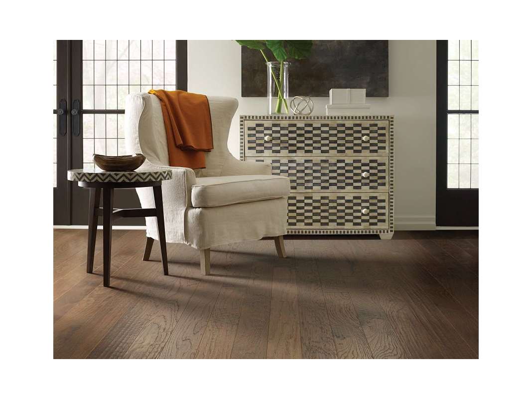 Pebble Hill’s handscraped hickory has that soulful, lived‑in patina that instantly grounds a room. The pillowed edges catch the light like a bespoke heirloom, giving each plank a sculptural presence. Pair it with moody cabinetry and brushed brass for a modern heritage story, or offset its texture with airy linens and pale walls. It’s a foundational layer of luxury—quietly distinguished, endlessly versatile.