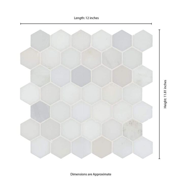 Use the Greecian White Hexagon Polished Marble Mosaic Wall Tile for your next installation or renovation project to incorporate a contemporary aesthetic into your decor. This attractive tile features 2 in. hexagonal pieces on a 12 in. x 12 in. mesh sheet that makes installation a much easier process. A smart blend of elegant white tones create a stylish complement for a wide variety of design schemes. This tile is constructed from durable marble material and is ideal for a variety of wall or floor applications. Note: Inspect all tiles before installation. Natural stone products inherently lack uniformity and are subject to variation in color, shade, finish etc. It is recommended to blend tiles from different boxes when installing. Natural stones may be characterized by dry seams and pits that are often filled. The filling can work its way out and it may be necessary to refill these voids as part of a normal maintenance procedure. All natural stone products should be sealed with a penetrating sealer.