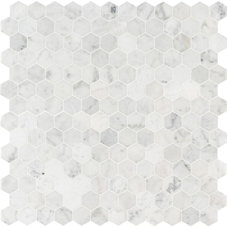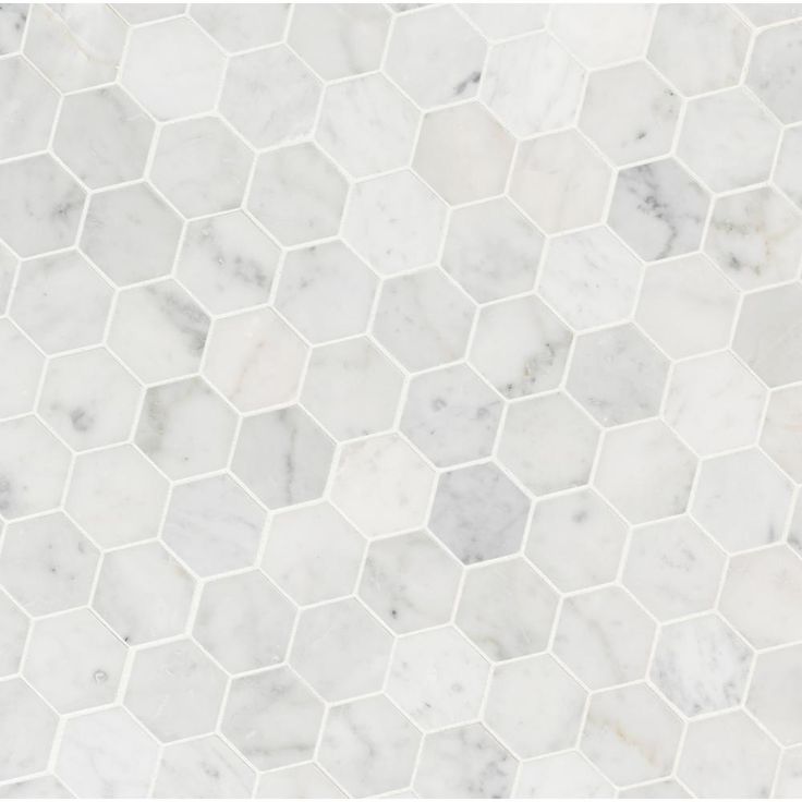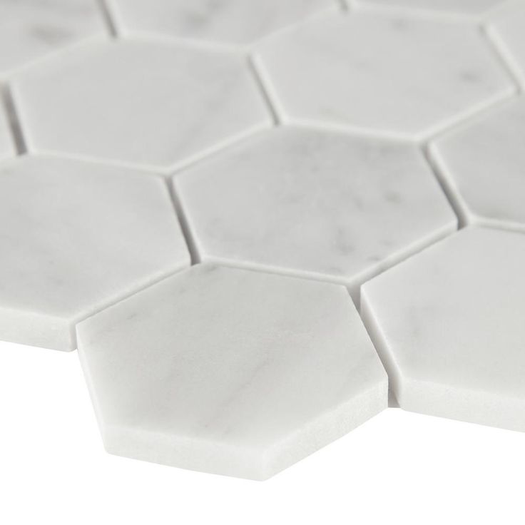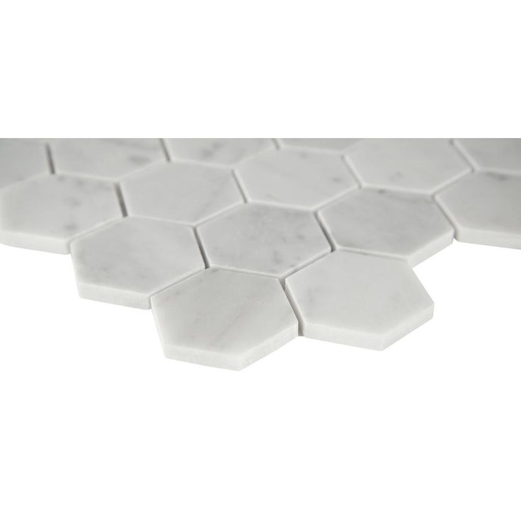 Use the Carrara White Hexagon Honed Marble Mosaic Wall Tile for your next installation or renovation project to incorporate a contemporary aesthetic into your decor. This attractive tile features 2 in. hexagonal-pieces on a 11.75 in. x 12 in. mesh sheet that makes installation a much easier process. A smart blend of elegant white tones create a stylish complement for a wide variety of design schemes. This tile is constructed from durable marble material and is ideal for a variety of wall or floor applications. Note: Inspect all tiles before installation. Natural stone products inherently lack uniformity and are subject to variation in color, shade, finish etc. It is recommended to blend tiles from different boxes when installing. Natural stones may be characterized by dry seams and pits that are often filled. The filling can work its way out and it may be necessary to refill these voids as part of a normal maintenance procedure. All natural stone products should be sealed with a penetrating sealer.