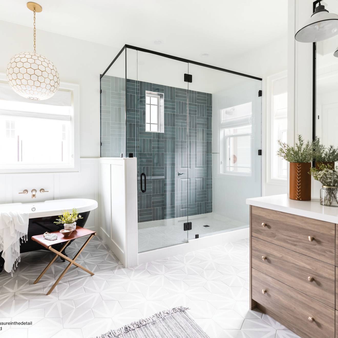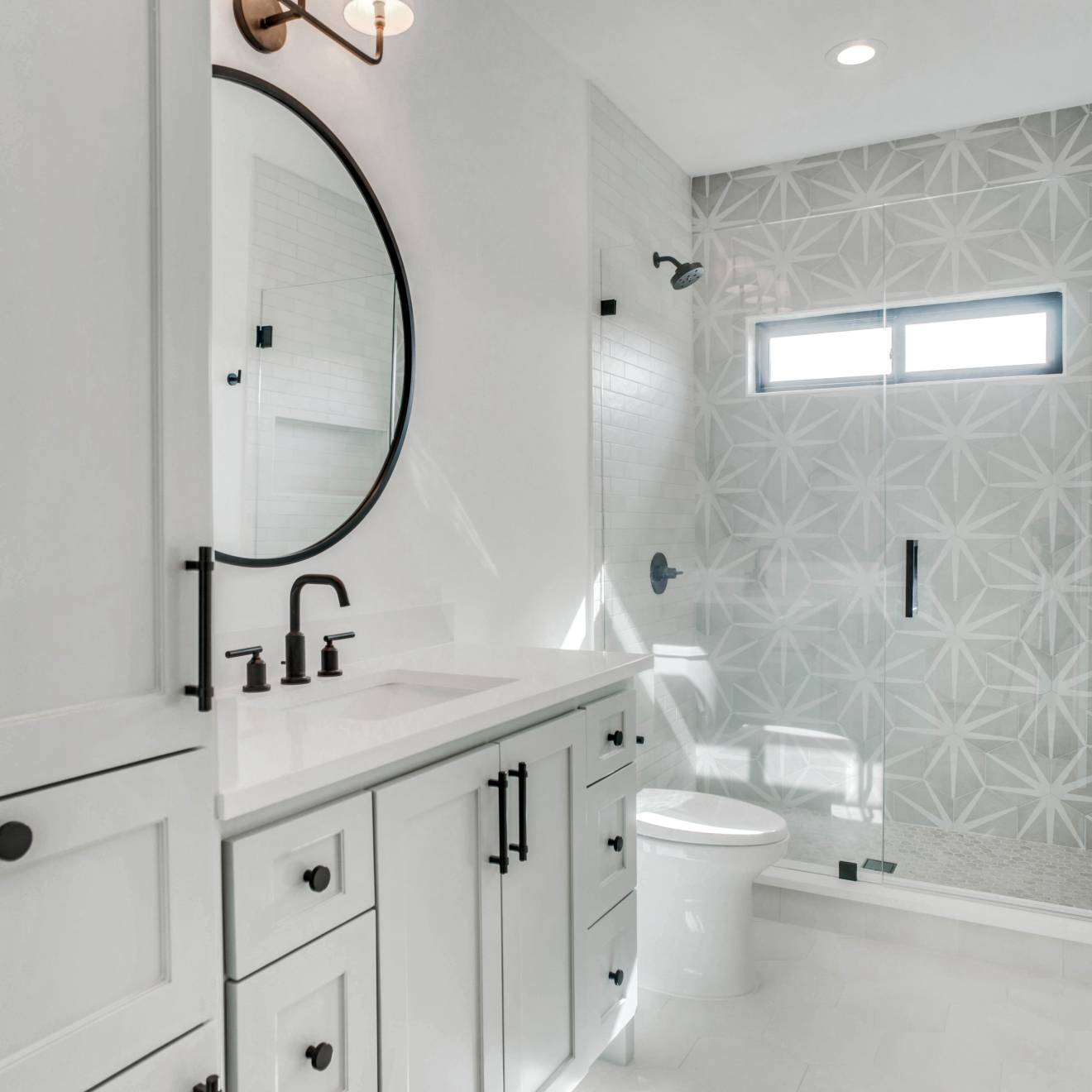 Allora Stella brings a refined starburst to the hexagon, casting light and movement across the room. Its matte gray-and-white palette whispers sophistication while the pattern energizes floors and showers with quiet drama. Pair it with minimalist fixtures and warm wood to let the geometry sing, or layer with linear wall tile for a tailored contrast. It’s a polished essential for spaces that embrace modern elegance with ease.