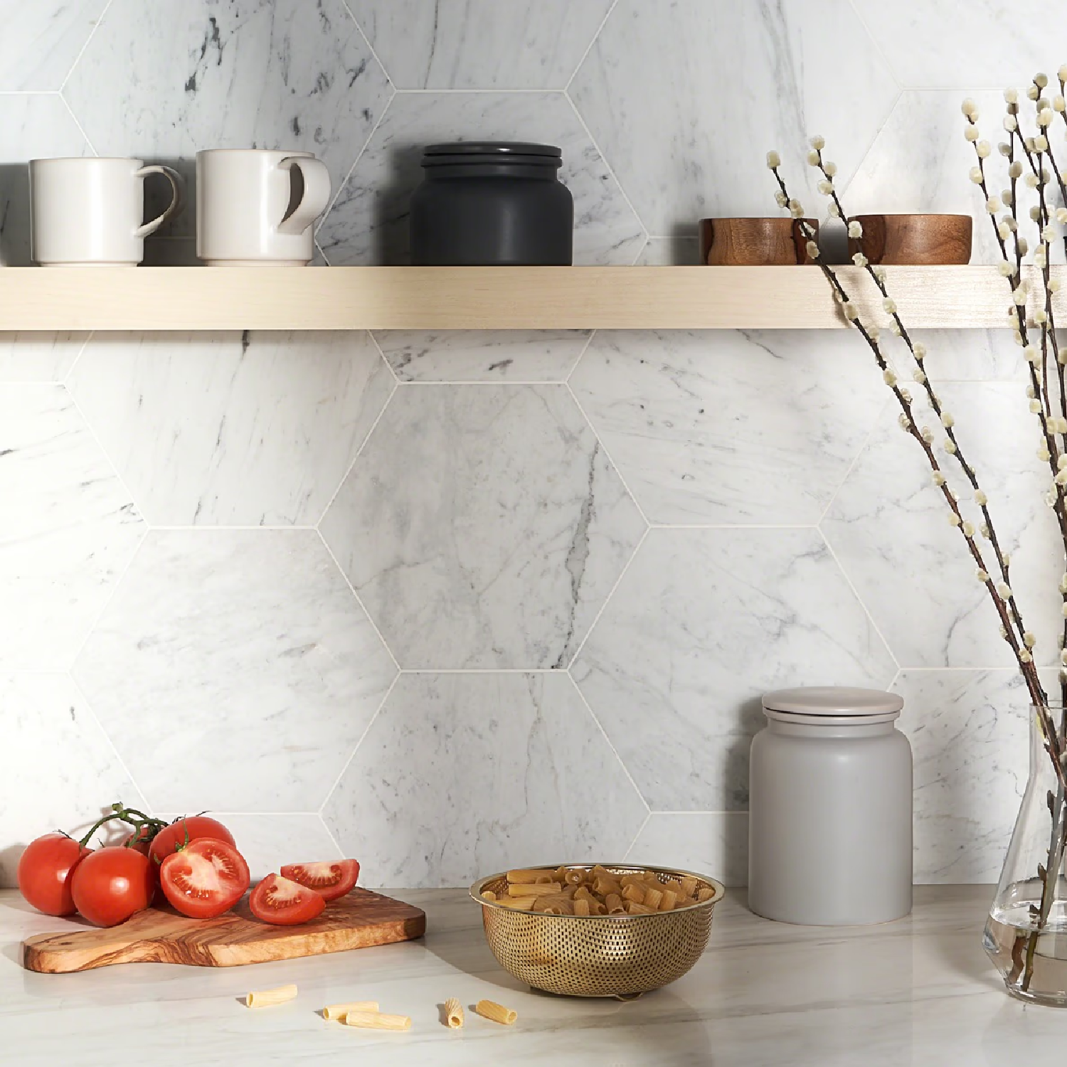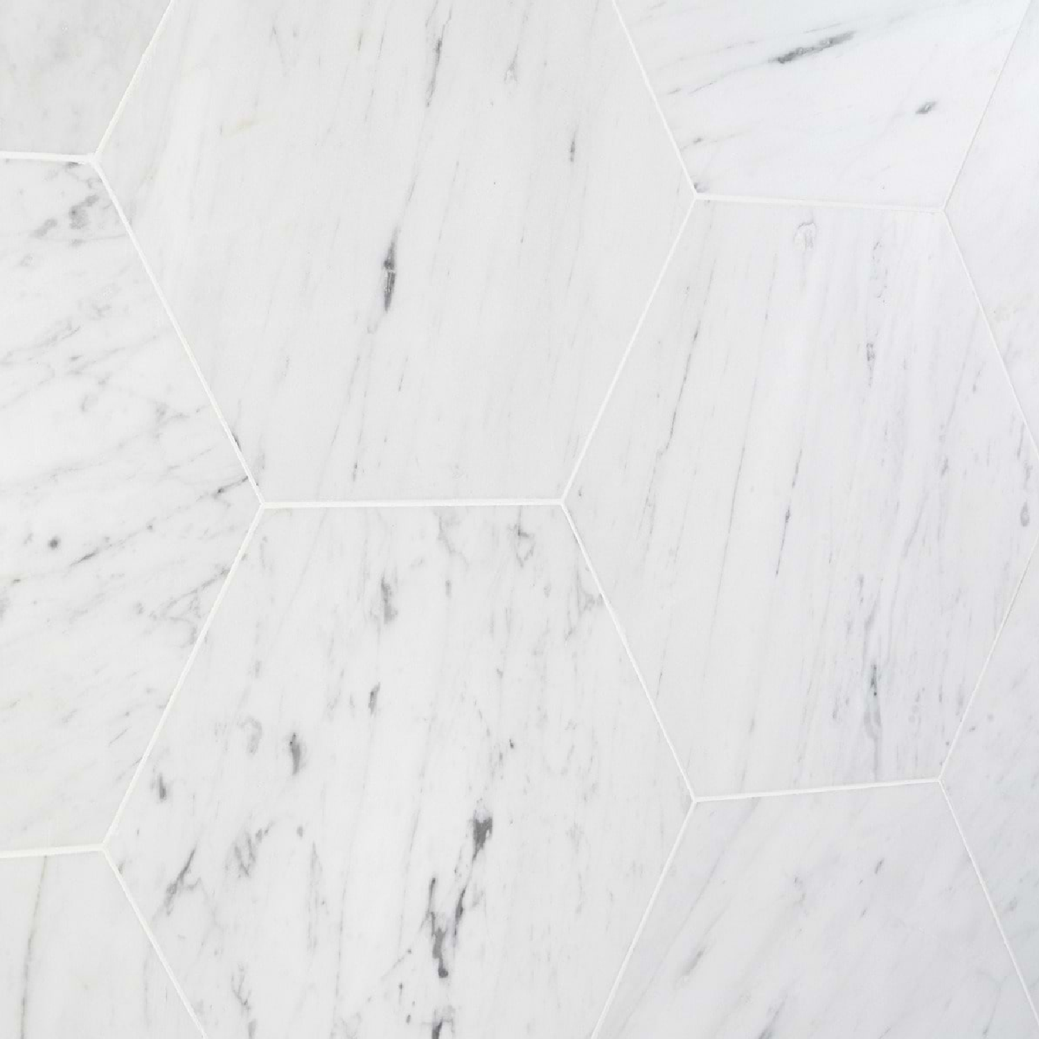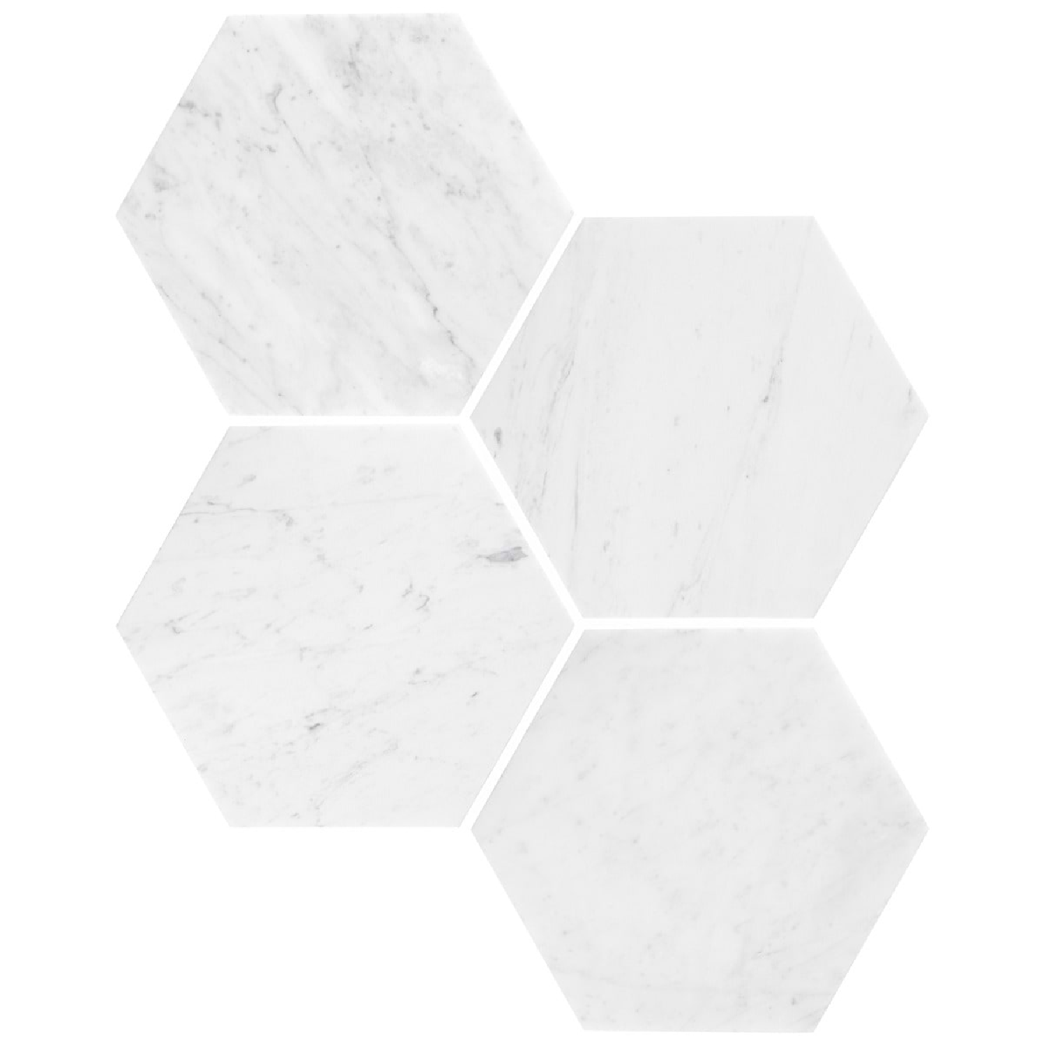 Enhance your space with timeless elegance! Shop now and elevate your design with Carrara 10" Hexagon Honed Marble Tile.