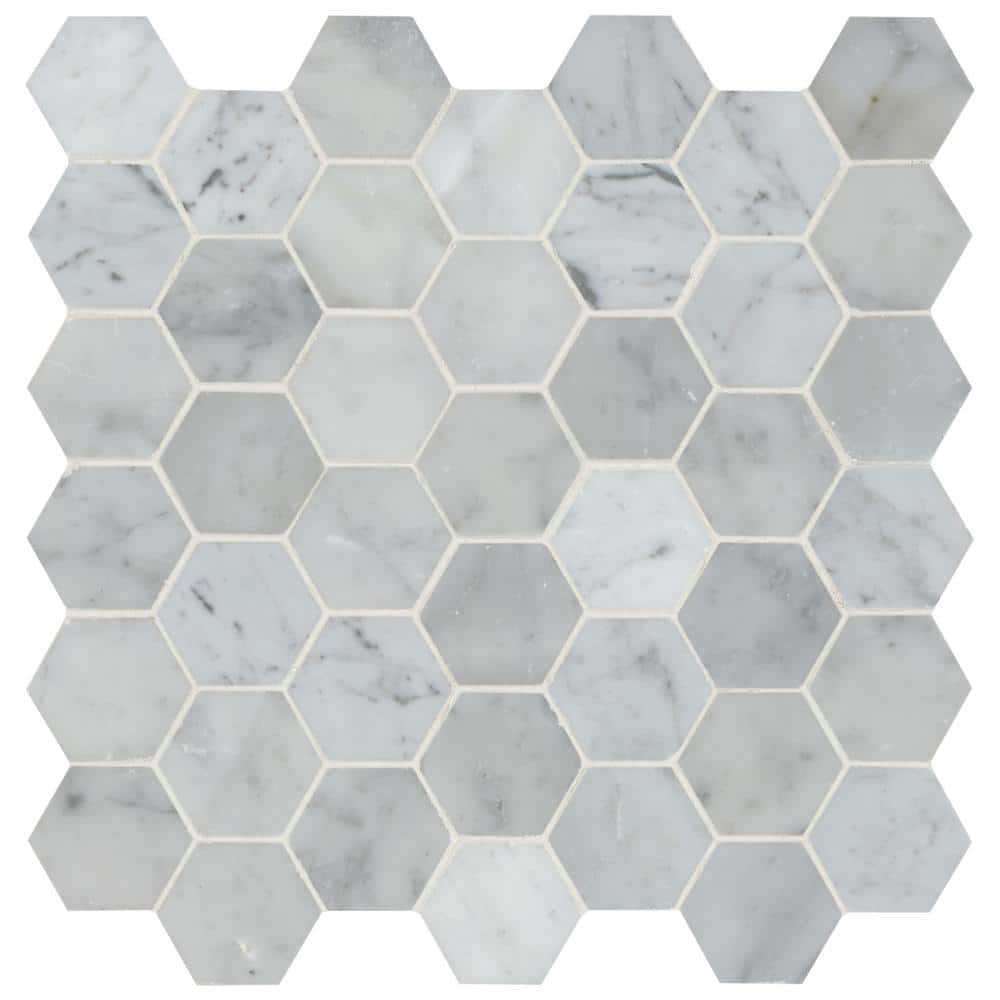 MSI Carrara White Hexagon 12 in. x 12 in. x 10 mm Polished Marble Mesh-Mounted Mosaic Floor and Wall Tile (10 sq. ft. / Case)
