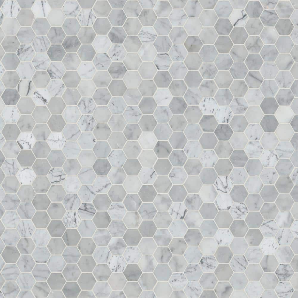 Elevate kitchens, baths, and accent walls with MSI’s Carrara White hexagon mosaic, crafted from real polished marble. The 12 x 12 in. mesh-mounted sheets feature 2-in. hex tiles for easy installation and timeless white-and-gray veining that suits classic or modern spaces.