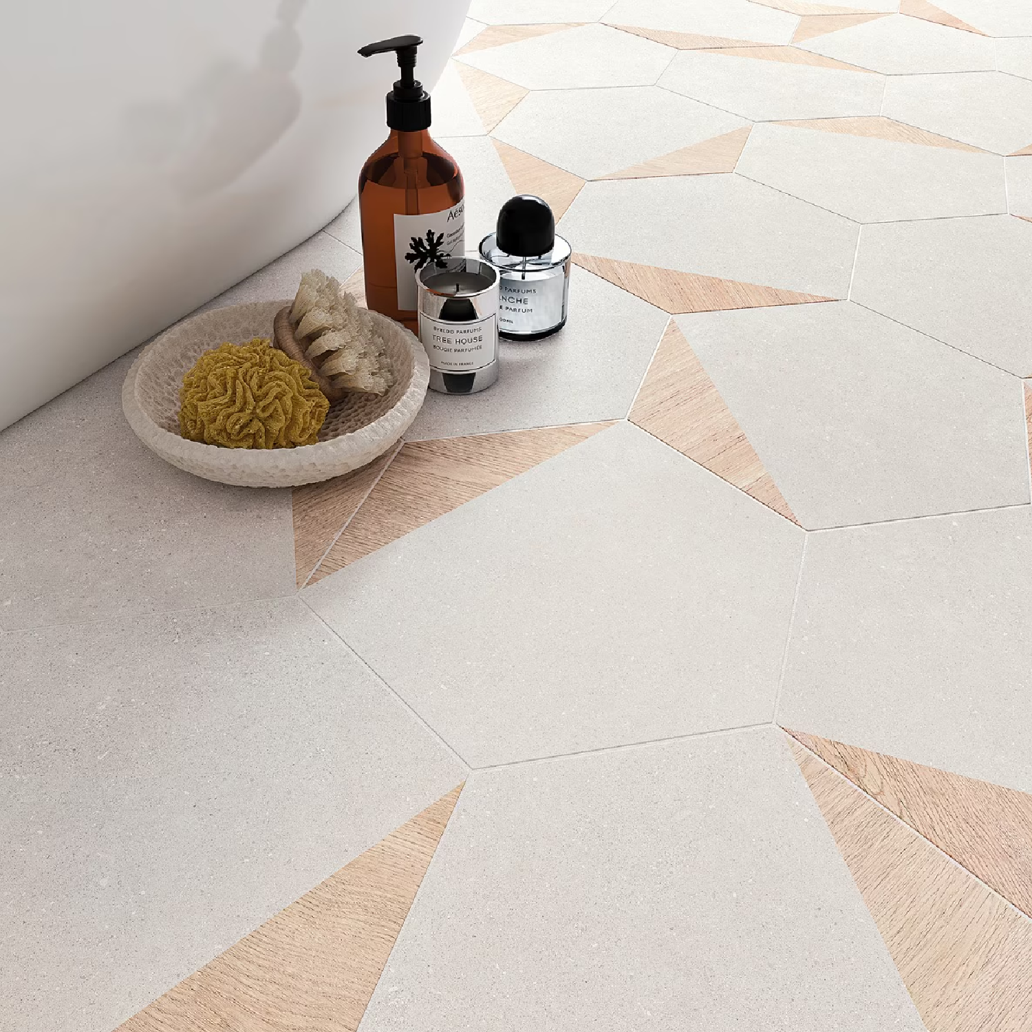 Regular price $84.65Transform your living spaces with the Pergola Wood White 12.5" Hexagon Matte Porcelain Tile. This exquisite tile combines a beige concrete-look base with a richly toned, wood-look corner, creating an eye-catching contrast that brings depth and character to any room. Perfect for those who appreciate the beauty of mixed-media designs, this tile offers endless possibilities for creative expression.