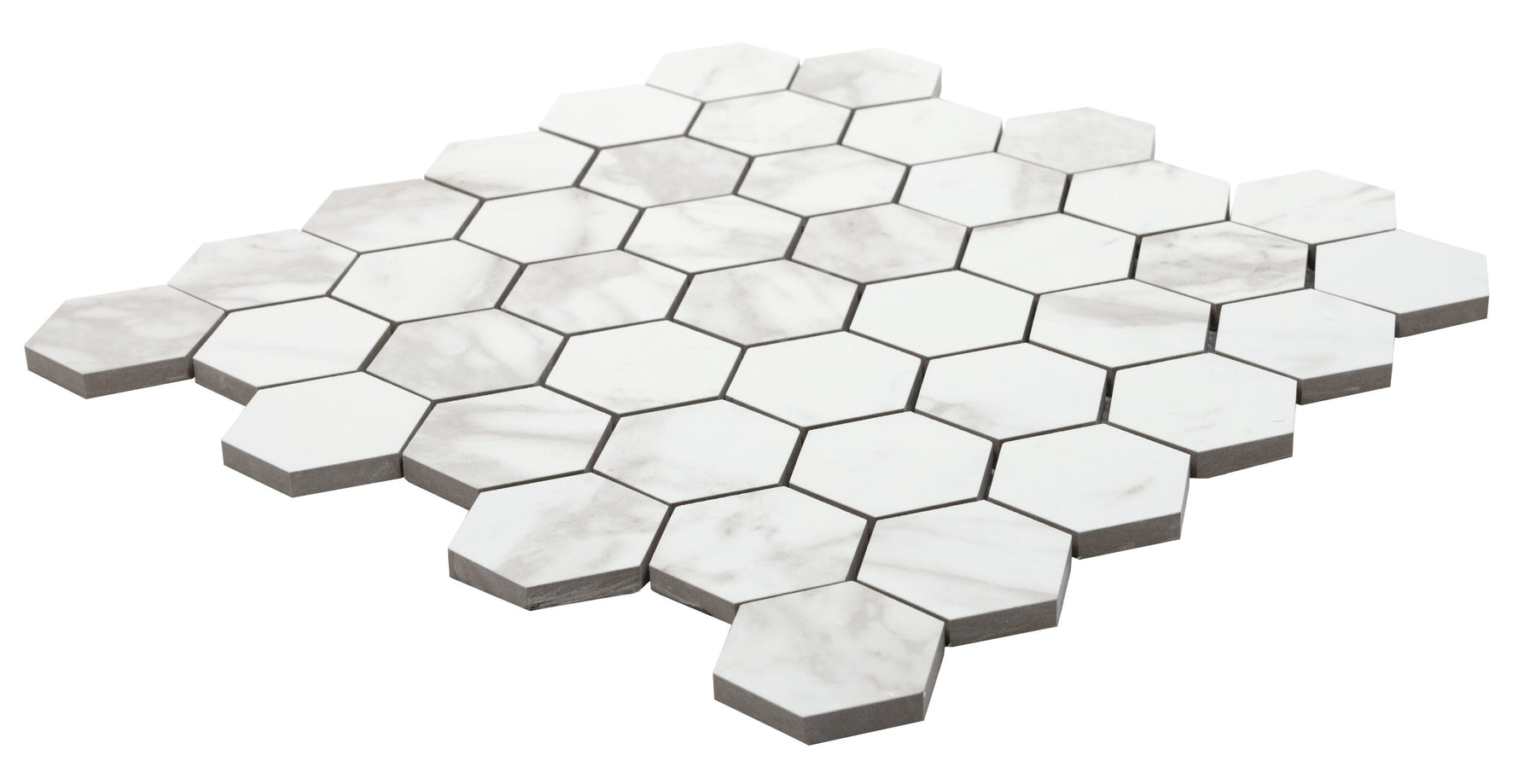 Transform your space with the Satori Bianco Palazzo Polished Porcelain Tile, which combines the classic elegance of marble with the durability of modern porcelain. Featuring a chic hexagon mosaic design, this versatile tile is perfect for both floors and walls, offering a seamless and sophisticated look with its rectified edges.