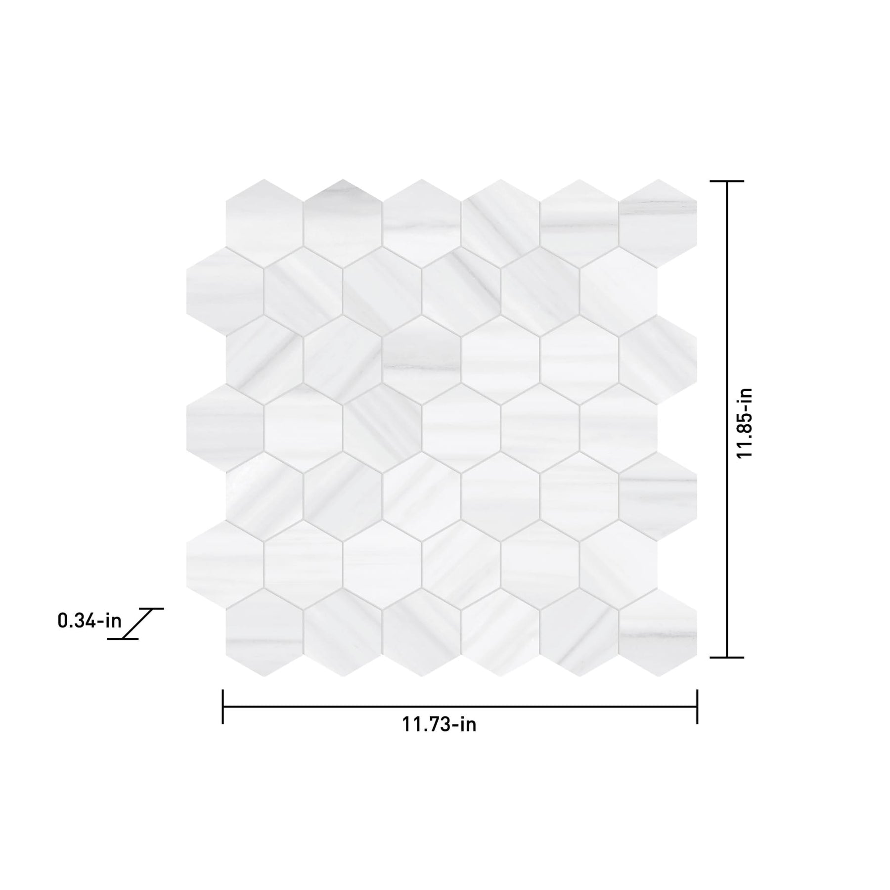 Bring a touch of modern elegance to any space with the Satori Zebrino Ash Hexagon Mosaic Tile. This 12-inch polished porcelain tile captures the luxurious look of marble while offering the unmatched durability of porcelain. Ideal for floors and walls, this tile's subtle white and gray palette transforms any room with its refined, seamless design.