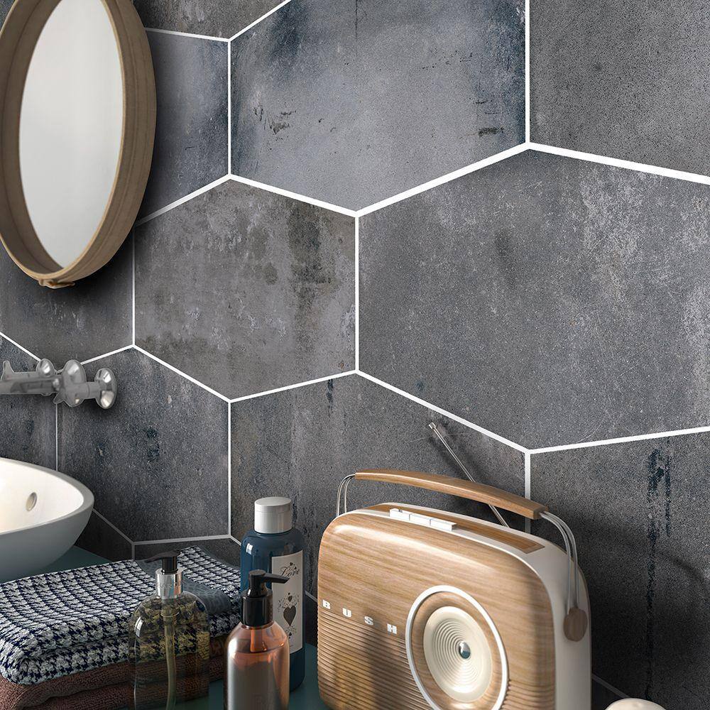 - Concrete-Look Design: Dark gray hexagon with matte finish for modern spaces