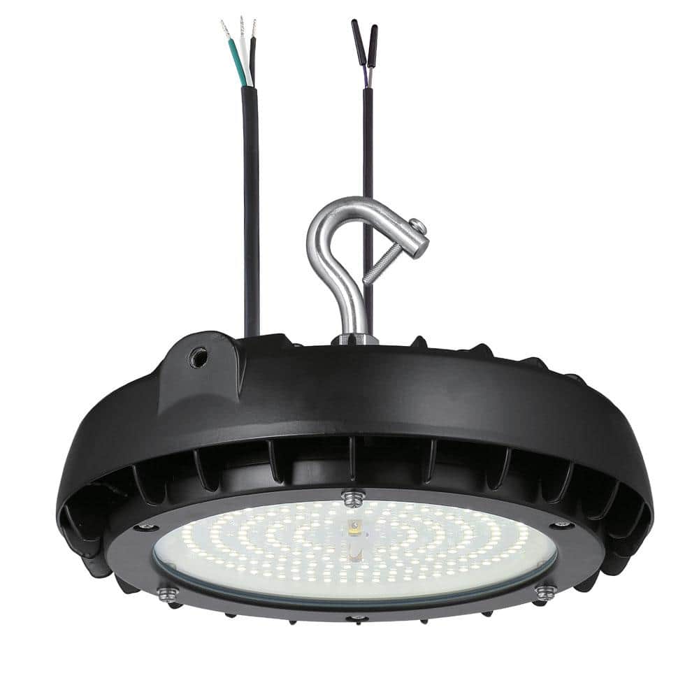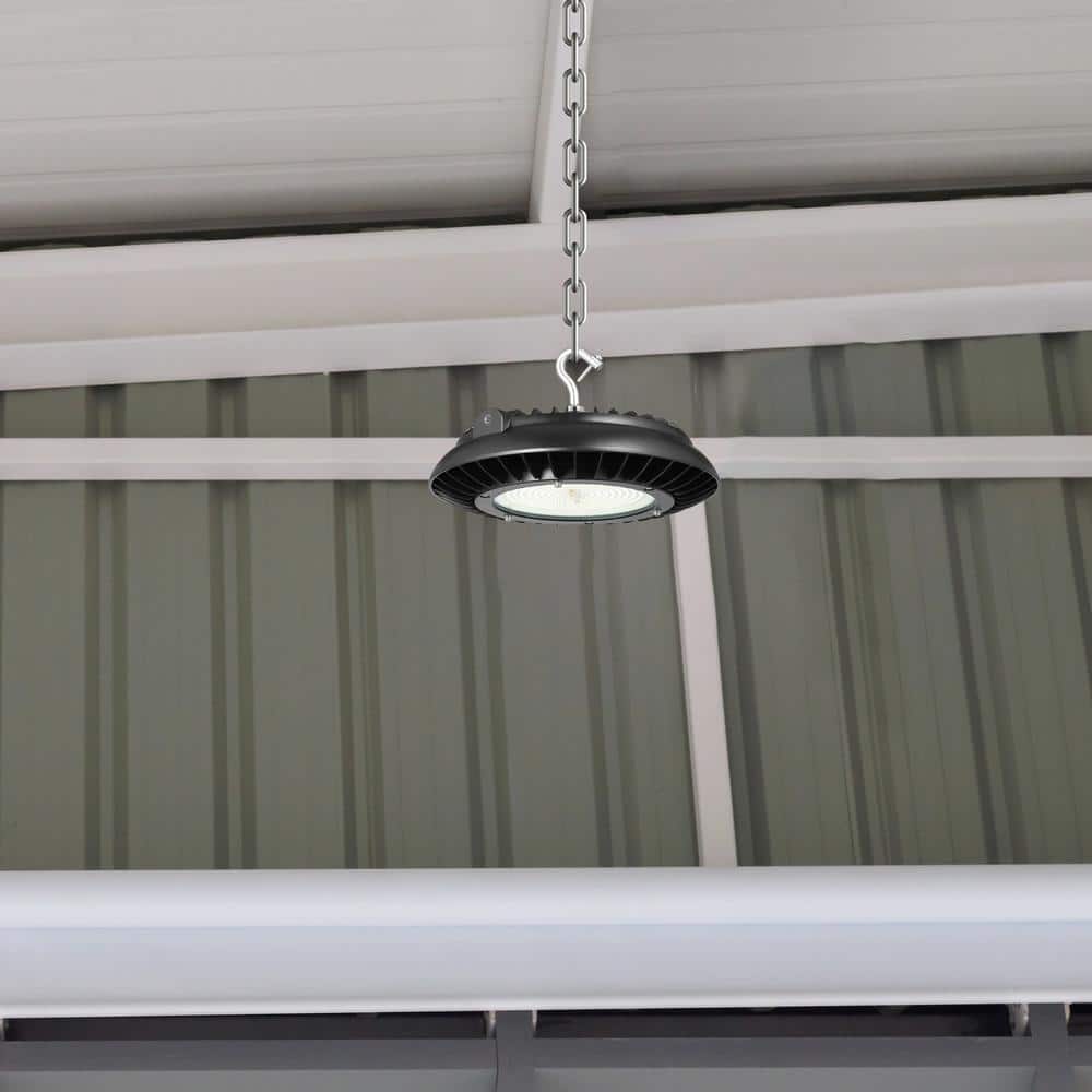 Illuminate commercial spaces with the EnviroLite 9-inch Round LED Black High Bay Light, offering 14,400 lumens of crisp daylight. Its energy-efficient design consumes only 80 watts, making it an ideal replacement for traditional HID lighting. Built to last with die-cast aluminum construction, it's perfect for warehouses, gymnasiums, and manufacturing facilities.