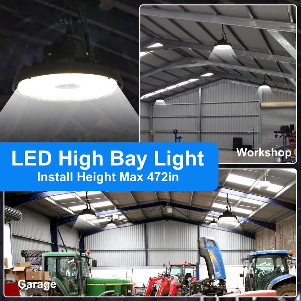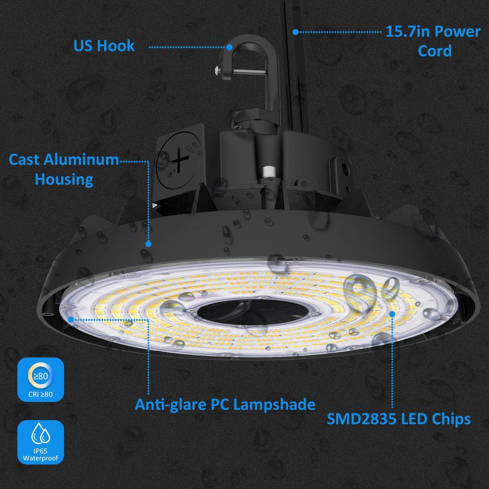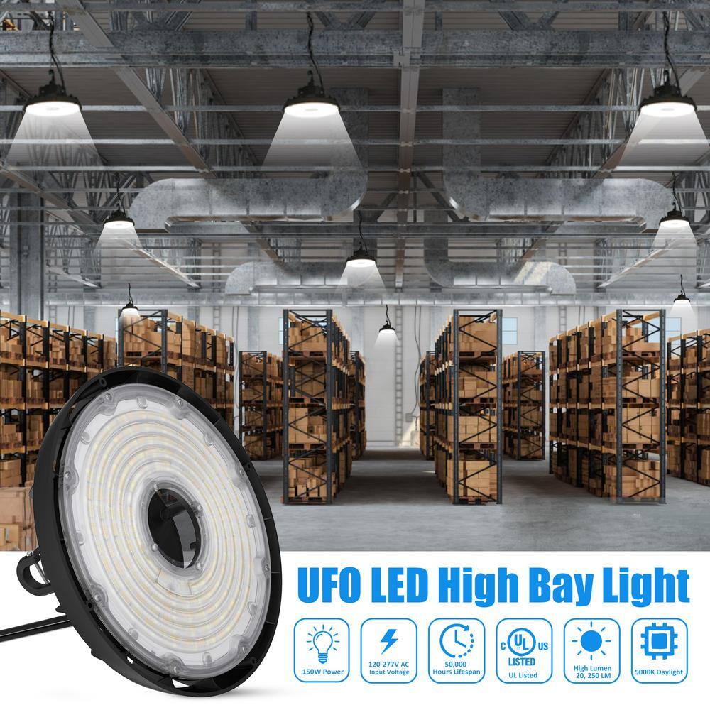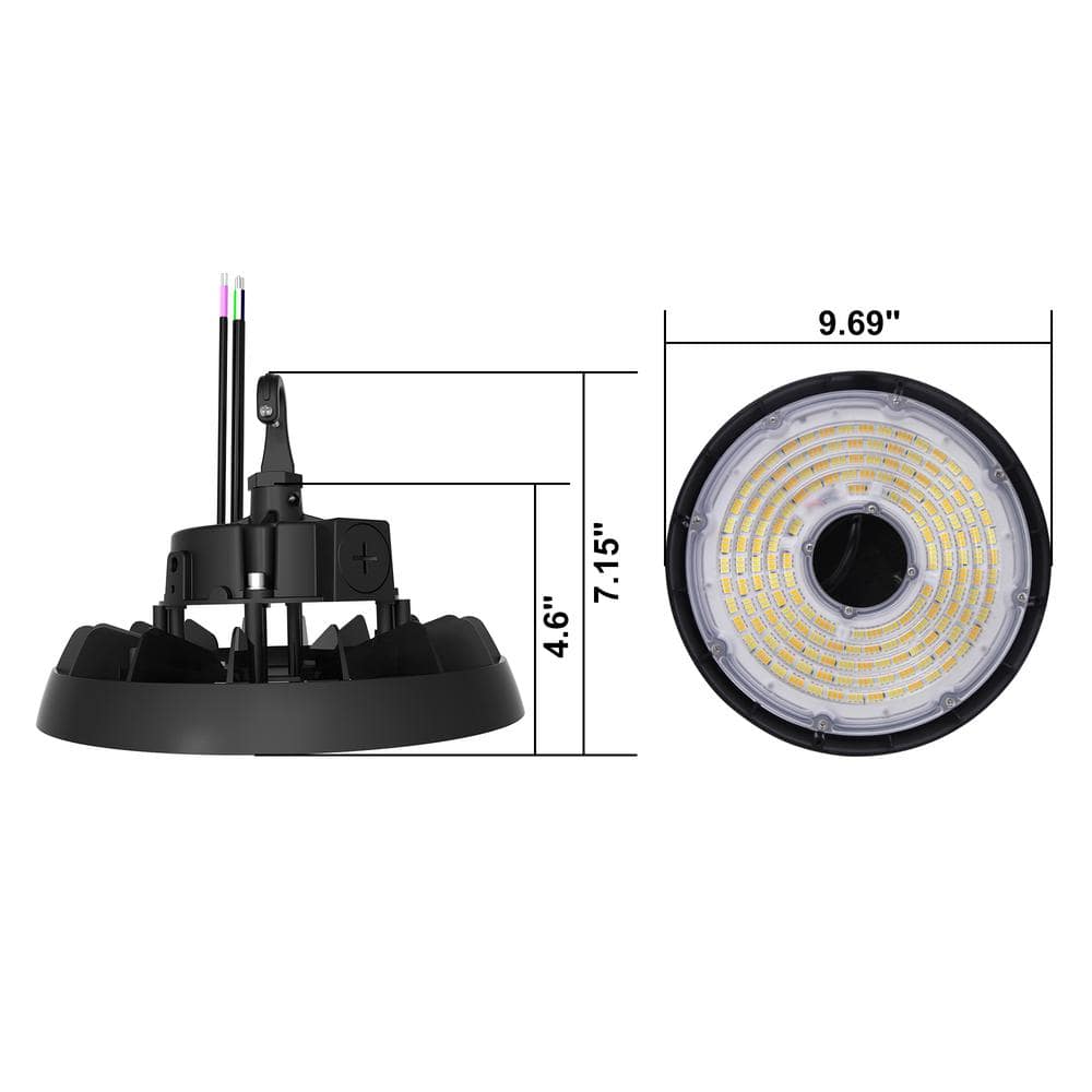 Lecoht 10 in. 150W Integrated LED Dimmable Black High Bay Light UFO 5000K 20250 Lumens IP65