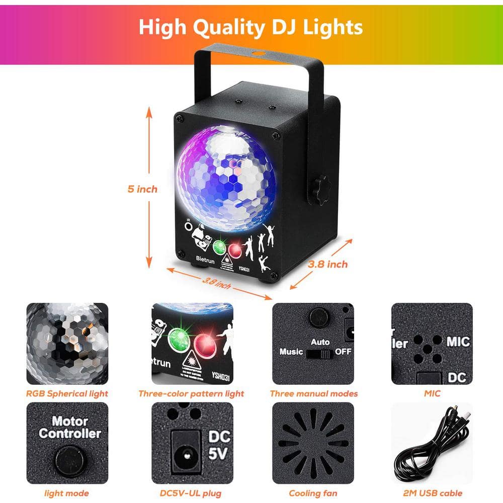 Lukyamzn 60 RGB LED Changing Disco Stage Light with Sound Activated and Bietrun Laser Rave Flashing Strobe Lights, Remote Control