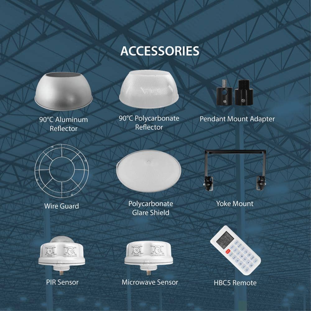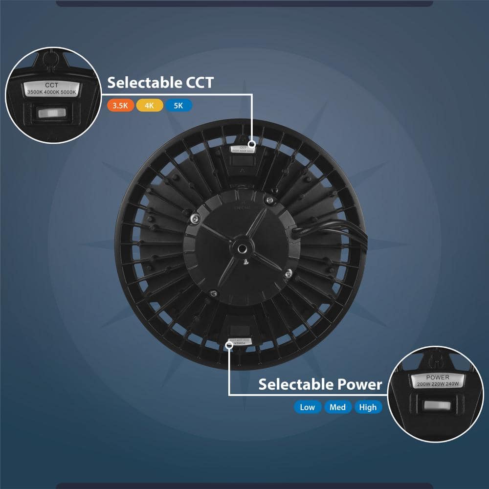 • Selectable Settings: Choose from 200W, 220W, or 240W and 3500K, 4000K, or 5000K color temperatures for customized lighting.