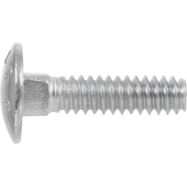 Heavy-duty Hillman carriage bolts made of steel with a corrosion-resistant zinc-plated finish. Coarse-threaded shank and round head with square neck provide strong, secure fastening for wood-to-wood or wood-to-metal projects.