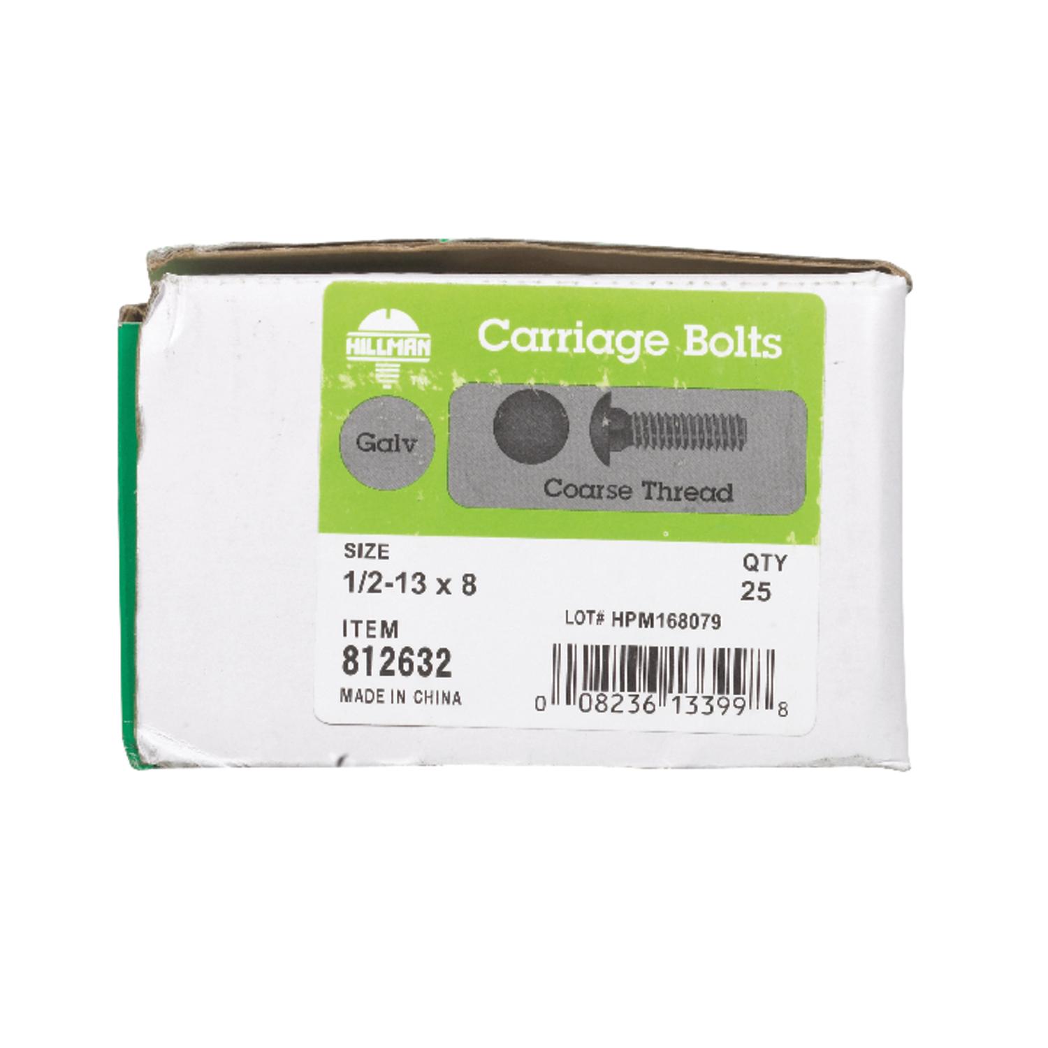 Hillman 1/2 in. x 8 in. Hot-Dipped Galvanized Steel Carriage Bolts, Coarse Thread (25-Pack)